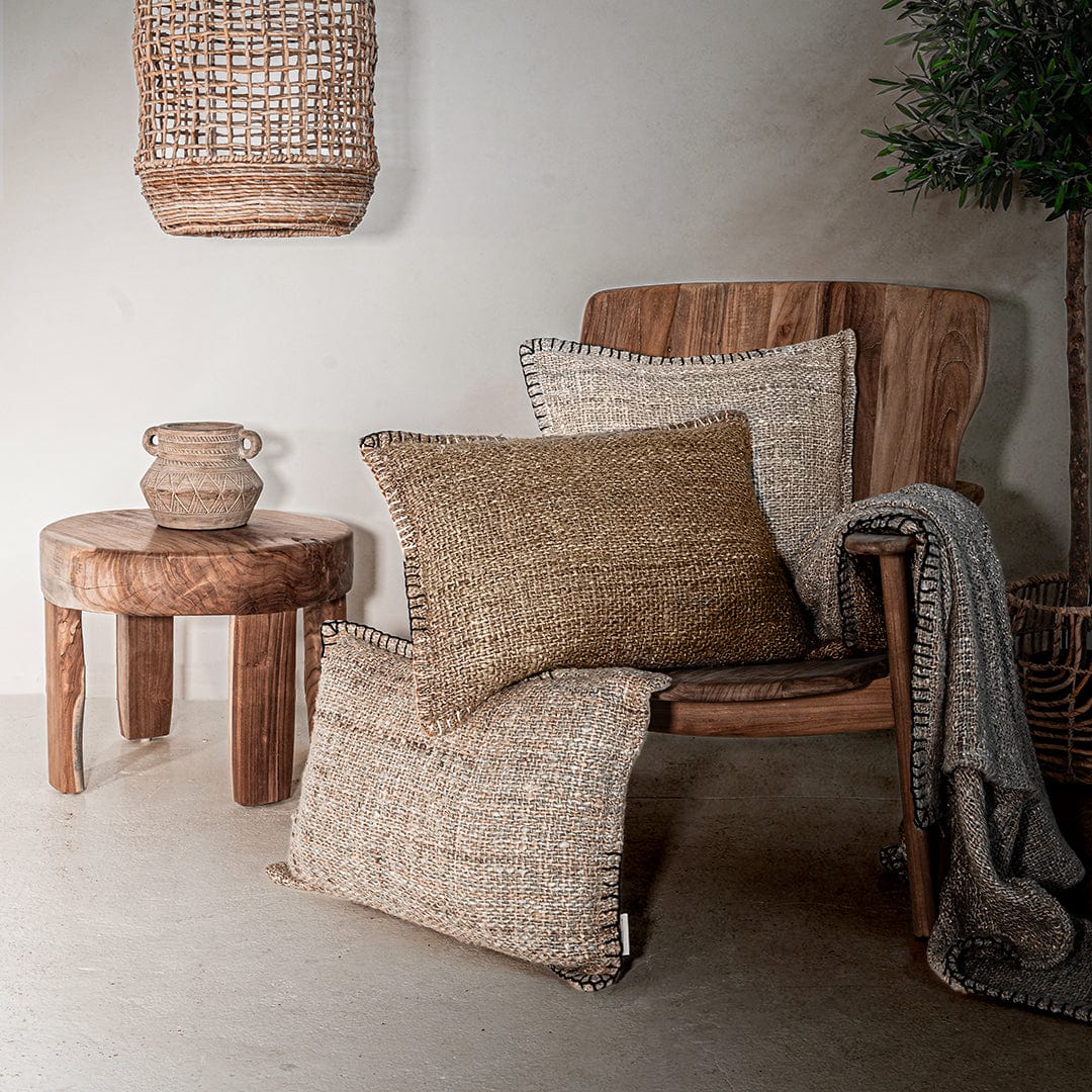 Fabriqué à la main en Inde à partir d'un mélange de coton et de viscose avec une finition aspect jute, il apporte texture, profondeur et charme rustique raffiné à votre intérieur. Idéal pour décorer un canapé, une banquette ou un lit, seul ou associé à d'autres coussins de la collection Etera.