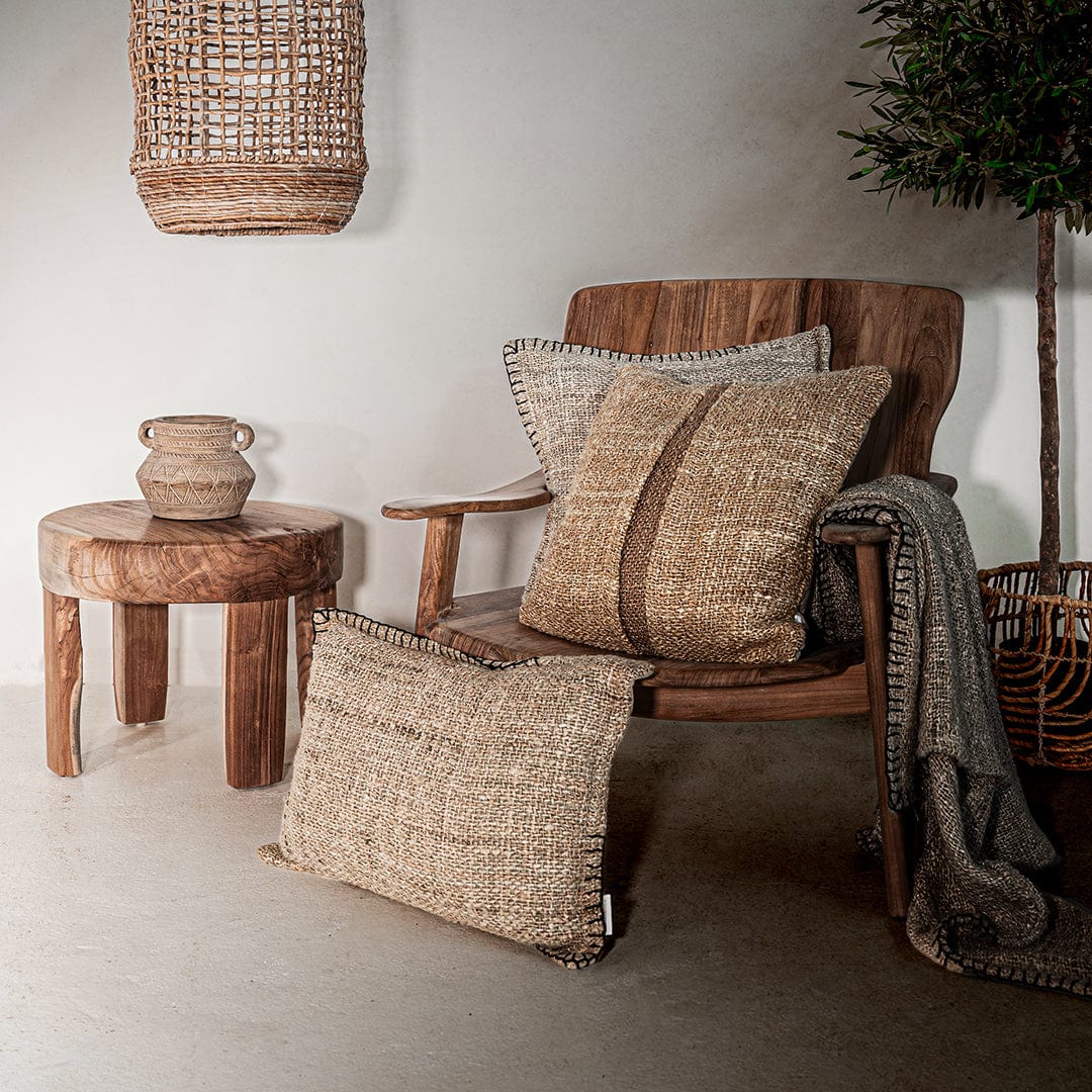 Le coussin carré Etera apporte une élégance naturelle et un contraste subtil à votre intérieur. Doté d'un motif à deux épaisseurs avec une bande centrale marron foncé sur une base naturelle chaleureuse et texturée, il ajoute profondeur et charme tactile à n'importe quel décor.