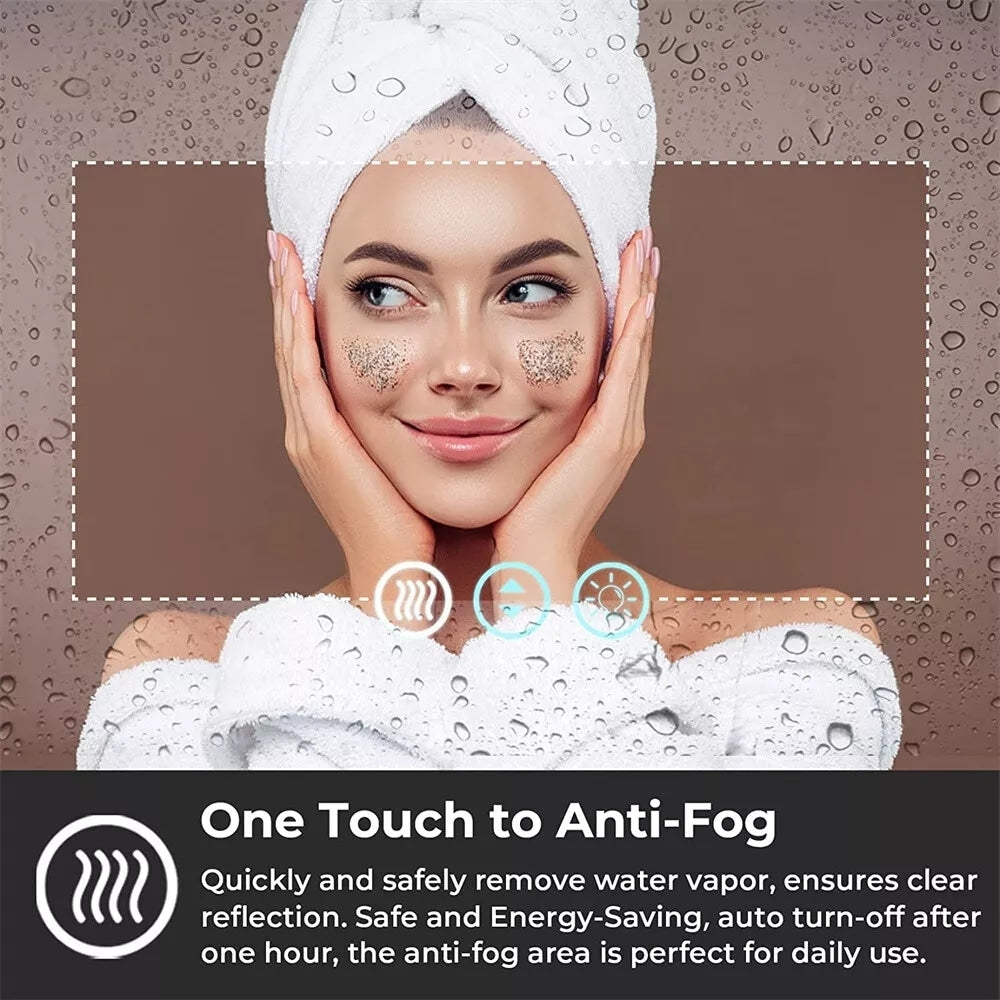 Miroir de salle de bain mural extra large avec éclairage LED, antibuée, 3 couleurs