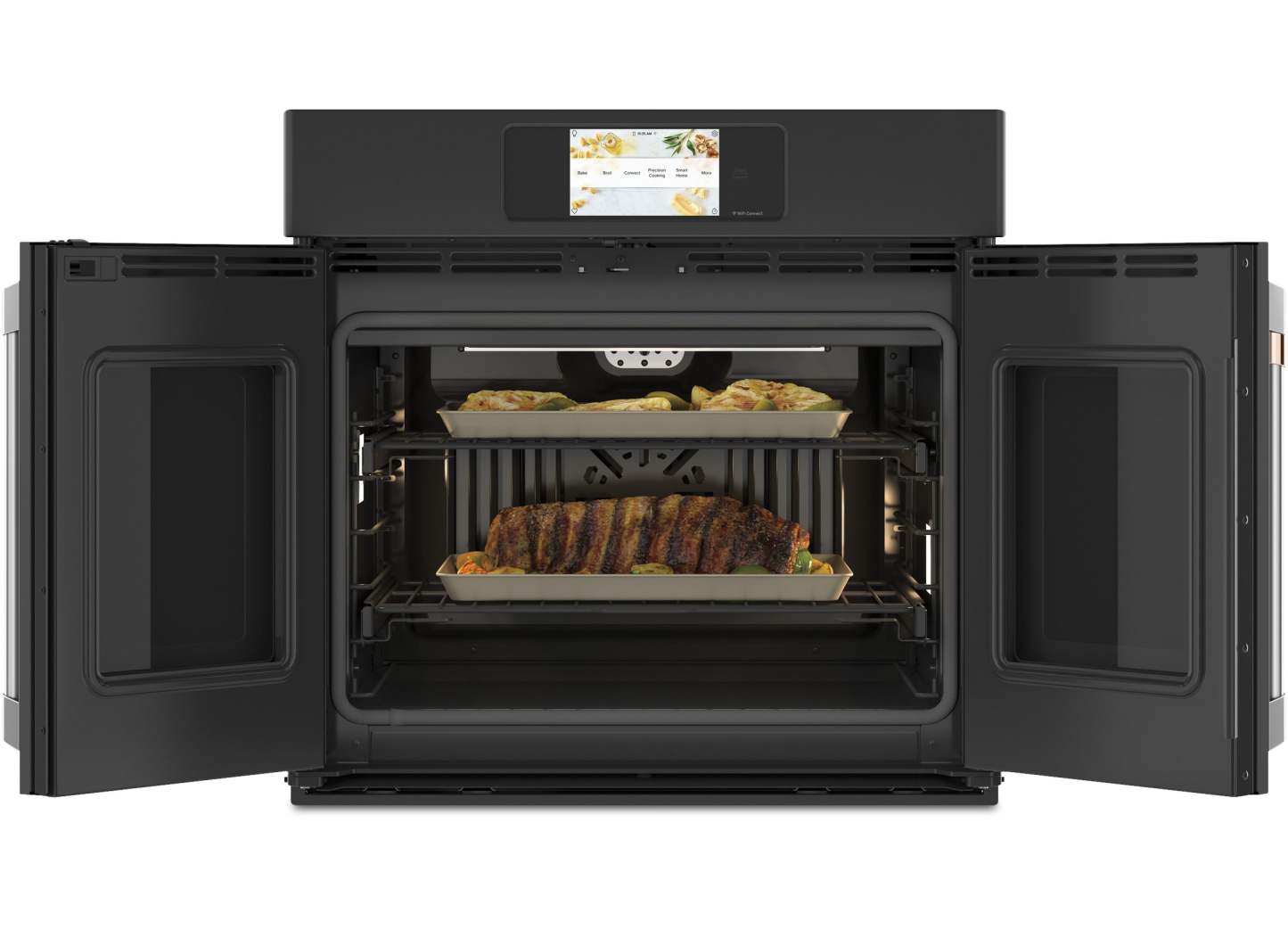 Exudez du style de toutes les manières avec ce four mural simple à porte française Café qui vous permet de personnaliser votre finition et votre combinaison de poignées pour un look professionnel qui vous est propre. Le design à porte française du four à convection offre une expérience ergonomique, accessible – et puisque les deux portes s'ouvrent en même temps, vous pouvez tenir votre plaque à biscuits d'une main et ouvrir le four de l'autre. Avec la cuisson de précision intégrée, vos repas sont parfaitement exécutés à chaque fois.