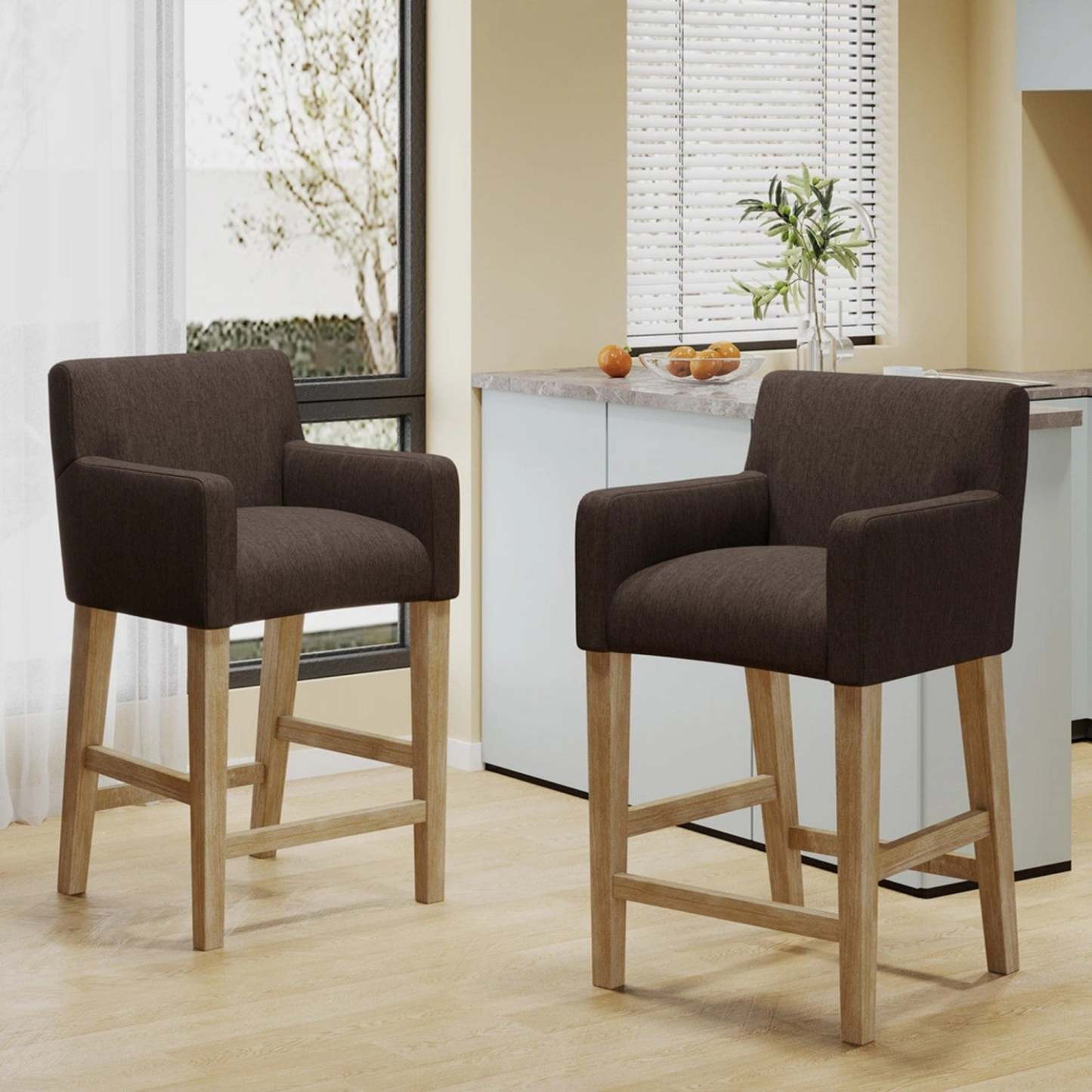 Gabrielle 26 Hauteur d'Assise Tabourets de Comptoir Ensemble de 2 avec Tissu Rembourré et Pieds en Bois Massif - Brun | Ensemble De 2 Tabourets De Comptoir Gabrielle, Assise 66 cm – Tissu Rembourré Et Pieds En Bois Massif - Brun