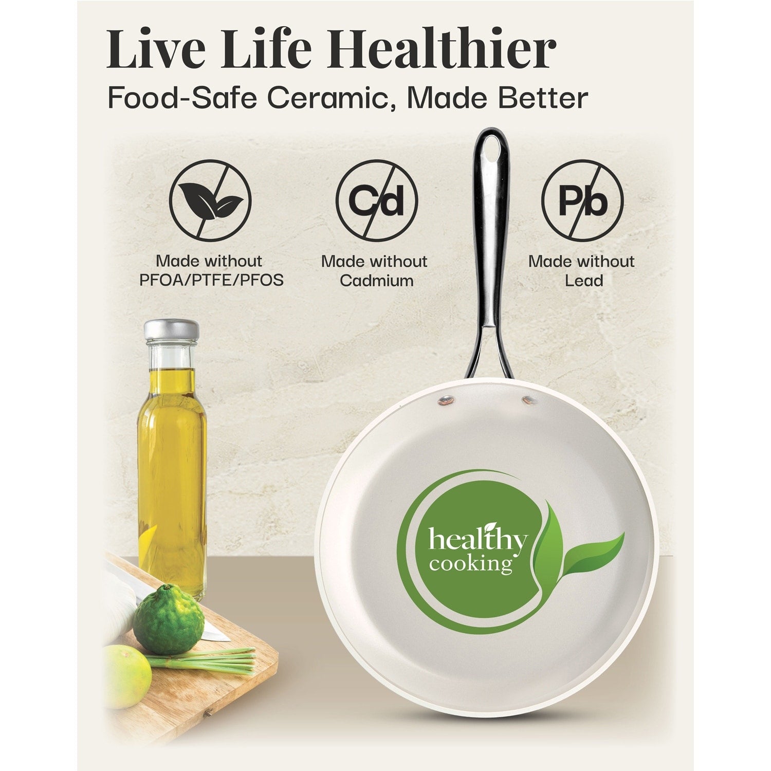 Ensemble de 12 pièces de casseroles et poêles Gotham Steel couleur crème, en céramique ultra antiadhésive avec poignées isolantes