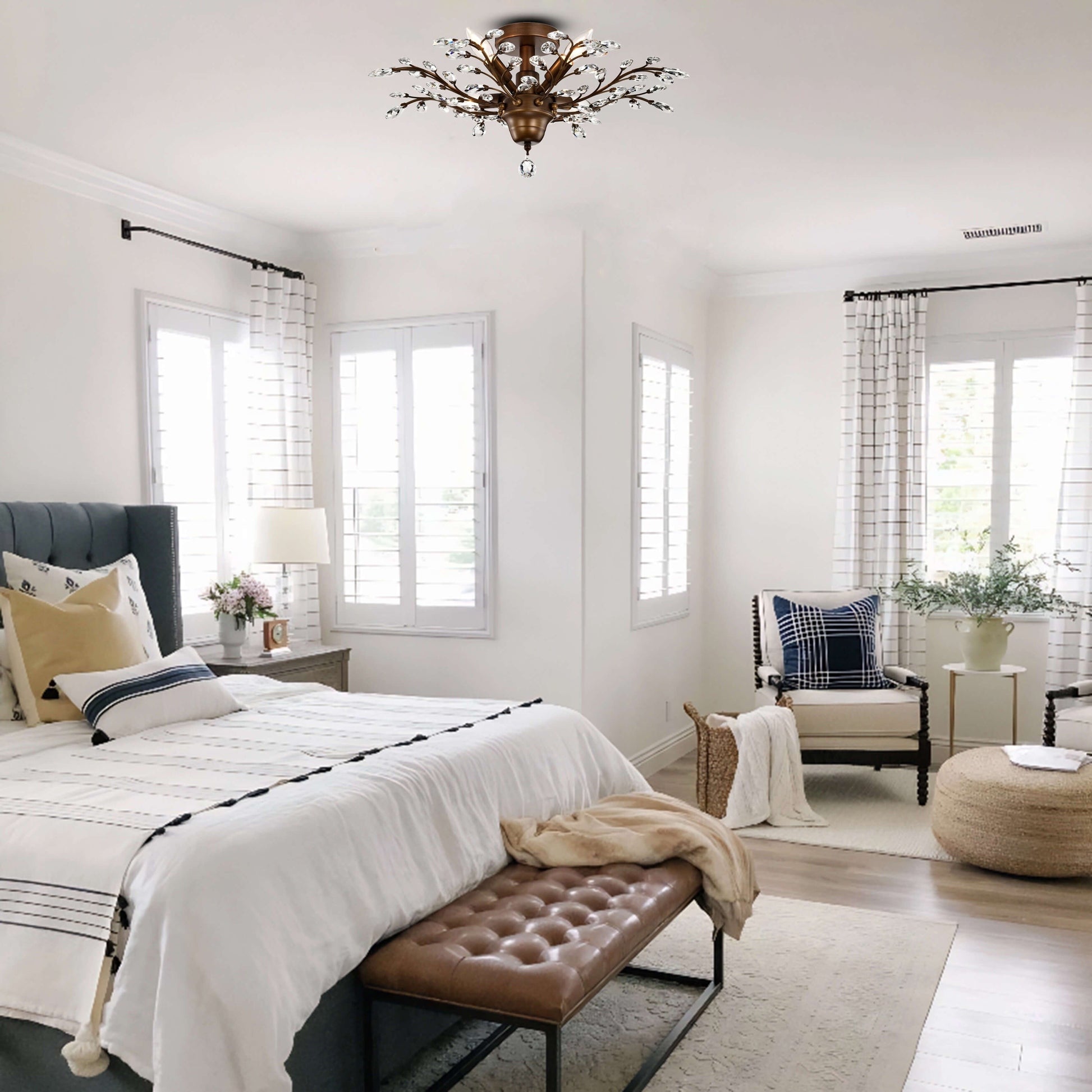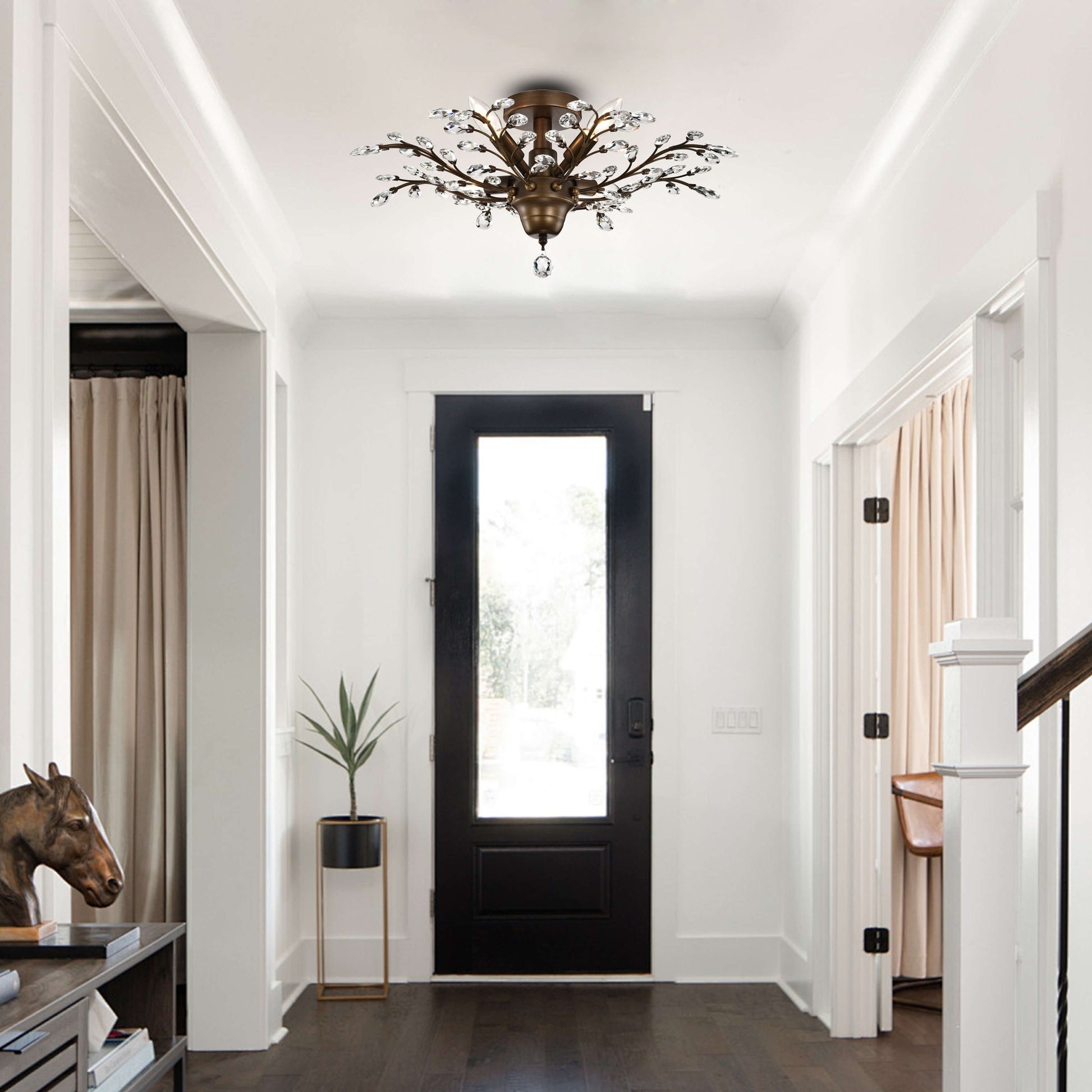 Plafonnier Holly à 4 lumières en cristal et feuilles