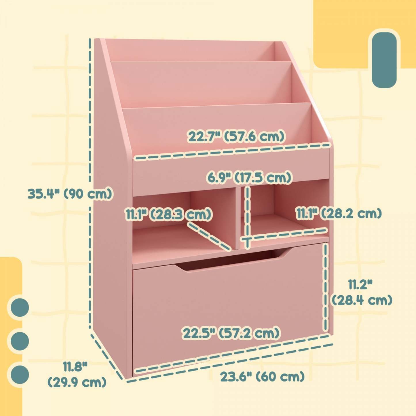 Homcom Bibliothèque Pour Enfants Multi-étagères Avec Tiroir De Rangement Pour Livres Pour Coin Lecture