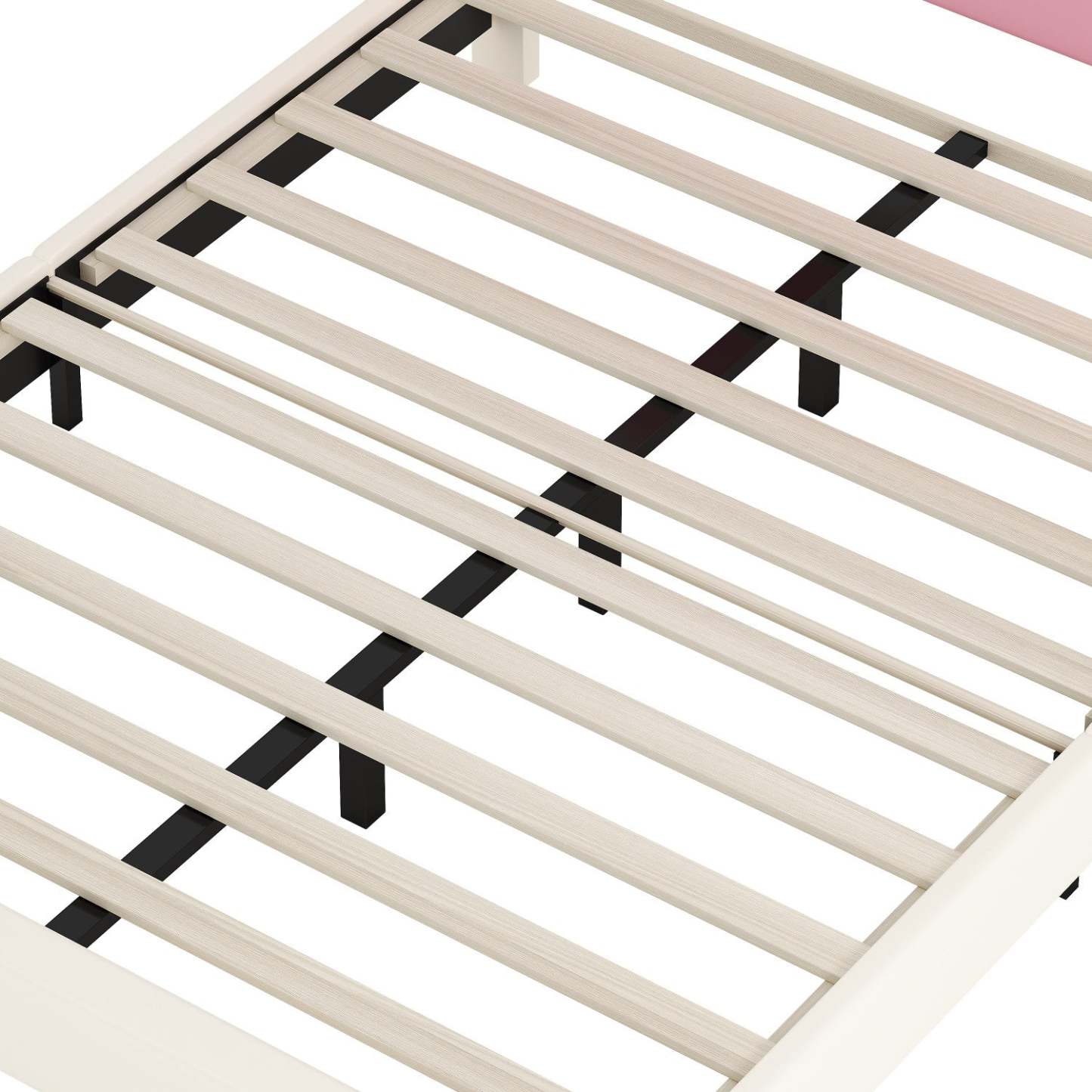 Ce lit princesse capitonné apporte une touche féérique à la chambre de votre enfant. Sa tête de lit en forme de couronne, revêtue de similicuir doux, crée une pièce maîtresse à la fois ludique et élégante que votre enfant adorera. Fabriqué en bois d'ingénierie massif, avec des lattes en peuplier et des pieds robustes, ce lit garantit une stabilité et un soutien durables, supportant jusqu'à 227 kg. Sa conception plate-forme dispense de l'utilisation d'un sommier tapissier, tandis que les lattes incluses assurent un soutien ferme du matelas. Un parfait mélange de durabilité, de confort et de style poétique pour votre petite princesse.