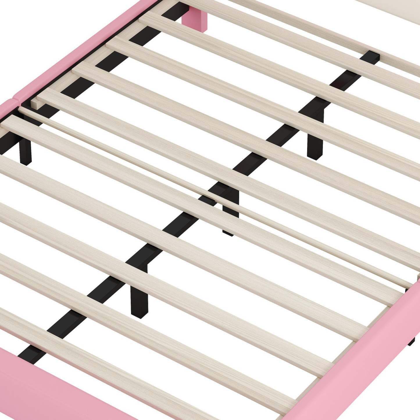 Ce lit princesse capitonné apporte une touche féérique à la chambre de votre enfant. Sa tête de lit en forme de couronne, revêtue de similicuir doux, crée une pièce maîtresse à la fois ludique et élégante que votre enfant adorera. Fabriqué en bois d'ingénierie massif, avec des lattes en peuplier et des pieds robustes, ce lit garantit une stabilité et un soutien durables, supportant jusqu'à 227 kg. Sa conception plate-forme dispense de l'utilisation d'un sommier tapissier, tandis que les lattes incluses assurent un soutien ferme du matelas. Un parfait mélange de durabilité, de confort et de style poétique pour votre petite princesse.