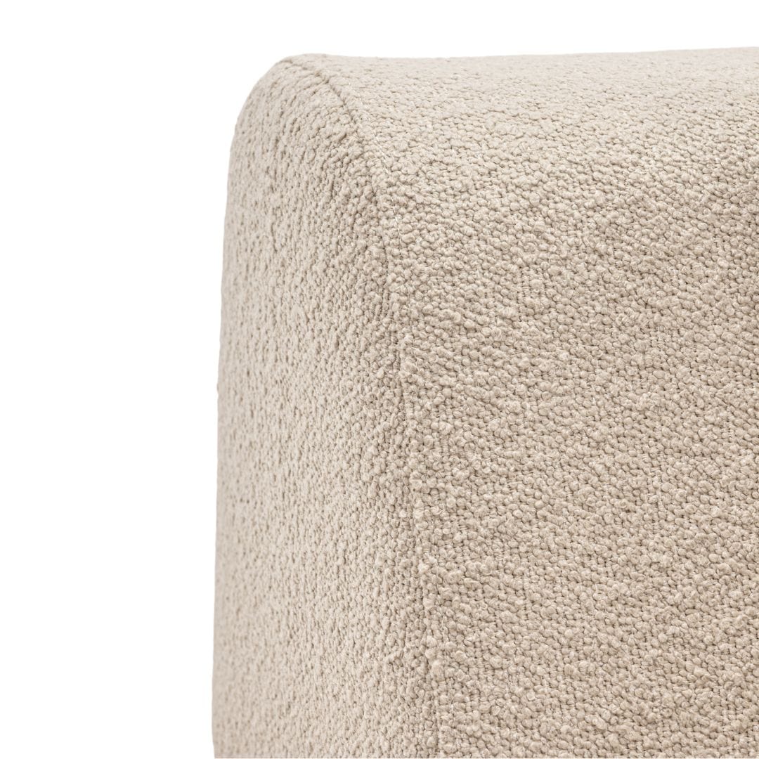 Canapé d'extérieur modulable en tissu bouclé sable, composé à 80 % d'oléfine et à 20 % de polyester. Comprend une méridienne, un canapé simple et un module deux places. Dossiers inclus ; coussins décoratifs vendus séparément.