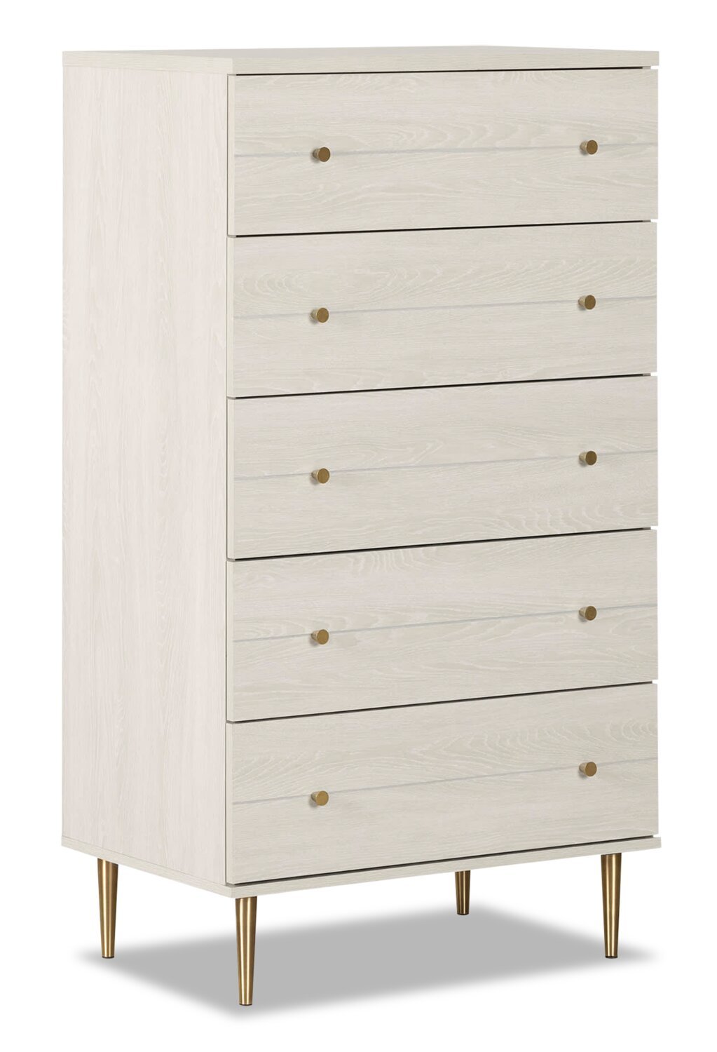 Commode de chambre à coucher Lake, 5 tiroirs, 29 L x 52 H, Fabriqué au Canada, Glam - Blanc | Commode verticale somptueuse Lake de 29 po (L) x 52 po (H) à 5 tiroirs pour la chambre à coucher, fabriquée au Canada - blanche
