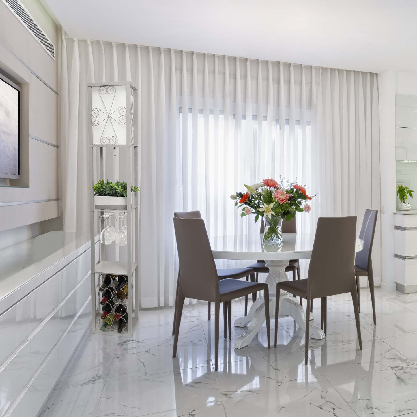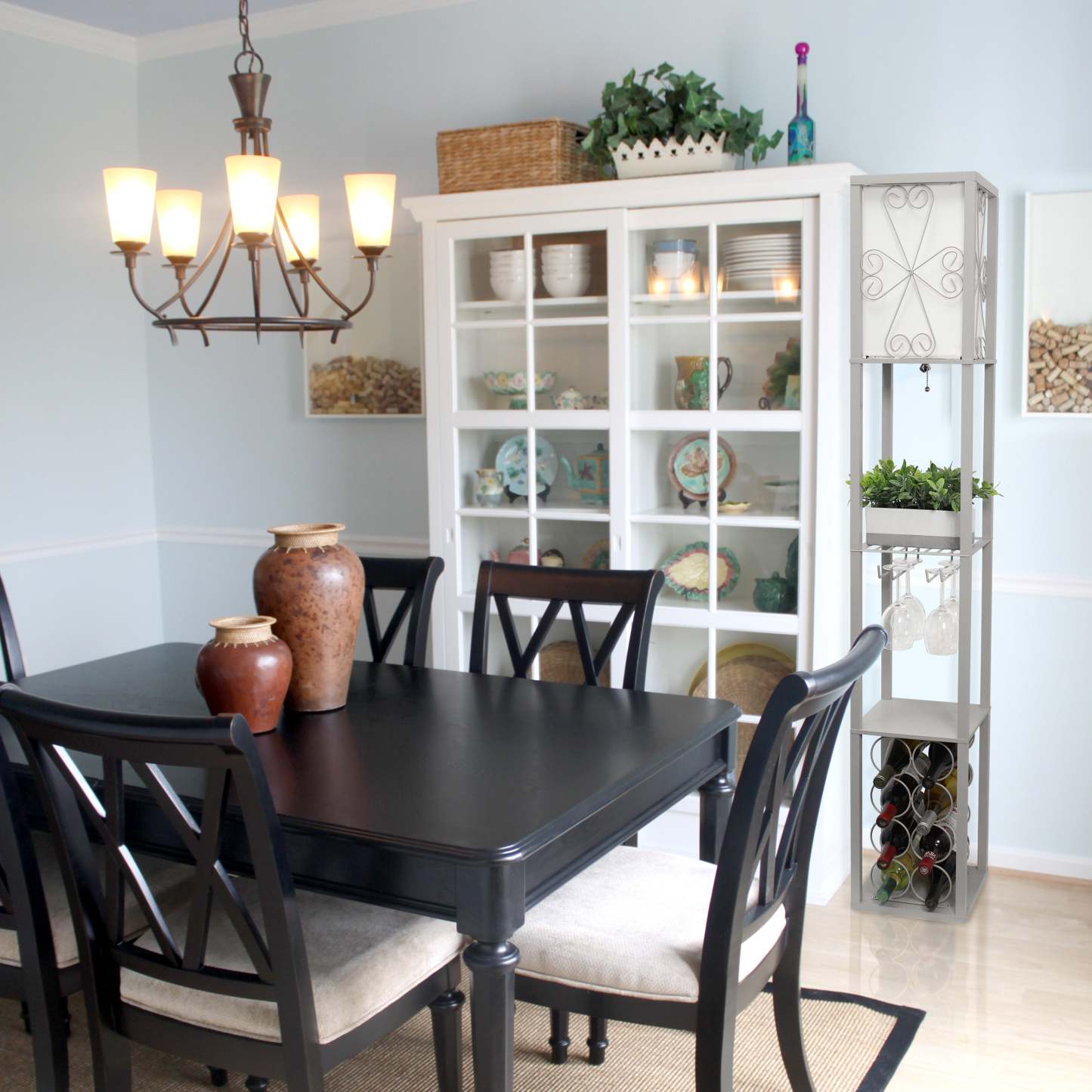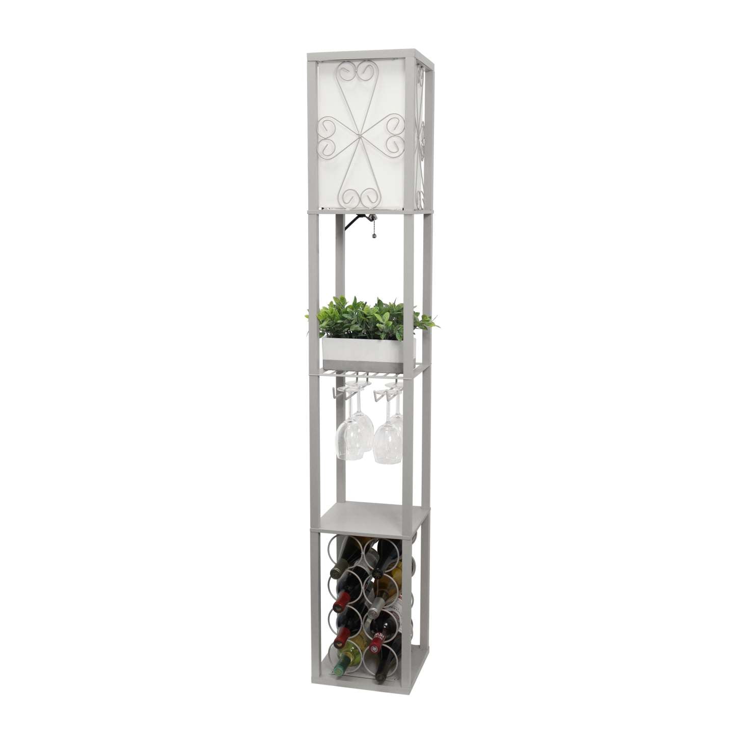 Lampe à pied de Simple Designs avec tablette et support à vin - grise