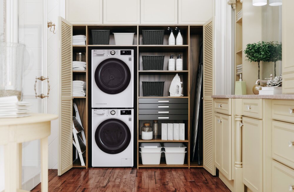 LG 2,6 pi³ Laveuse intelligente à chargement frontal et 4,2 pi³ Sécheuse intelligente avec pompe à chaleur | Laveuse intelligente de chargement frontal 2,6 pi³ et sécheuse intelligente avec pompe à chaleur 4,2 pi³ LG | LGFL24WW