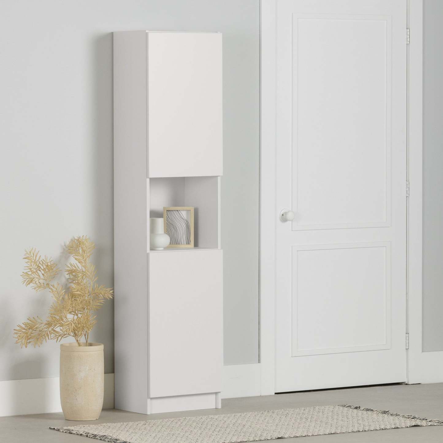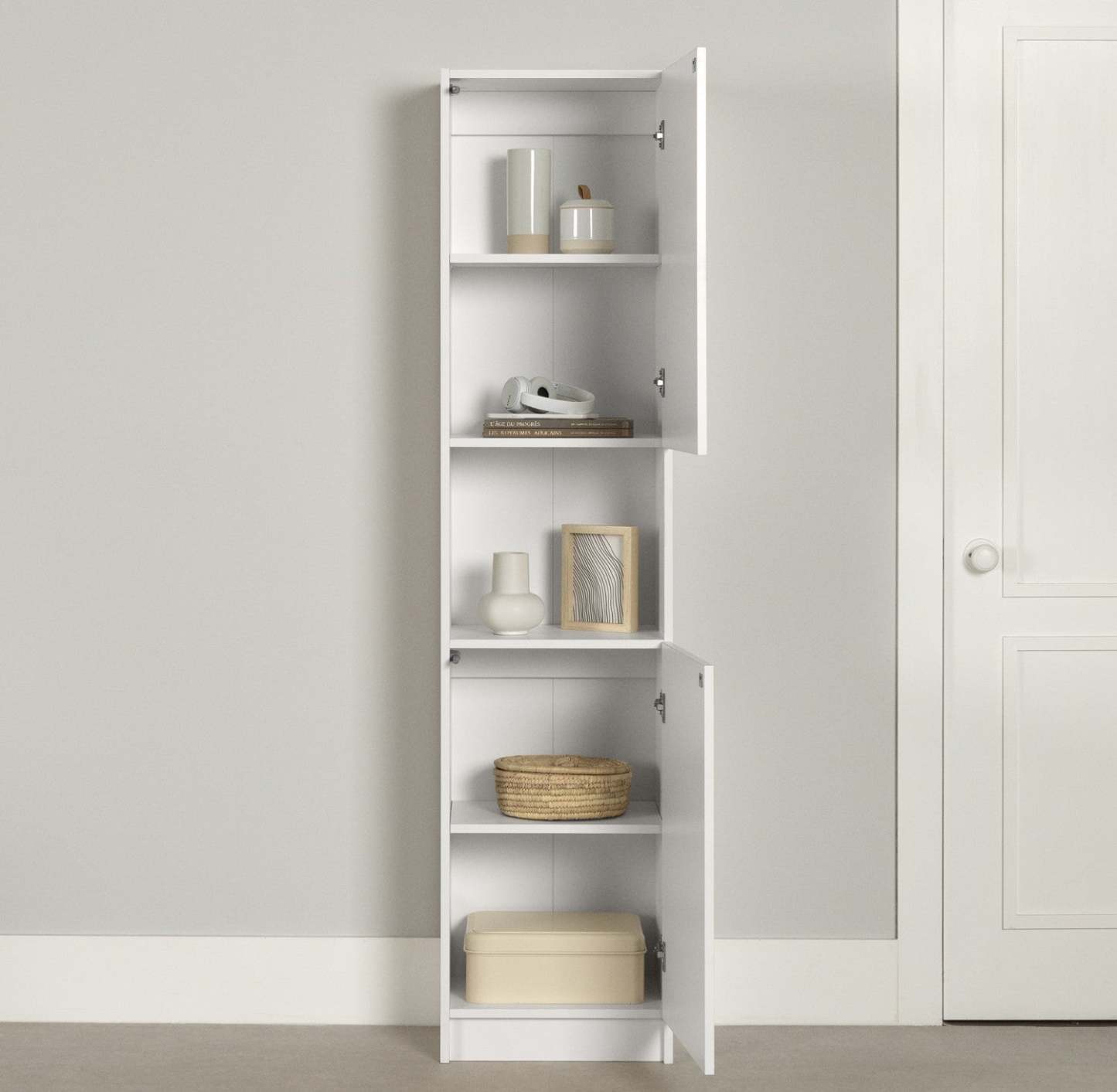 Liora Bibliothèque Étroite 2 Portes - Blanc Pur | Bibliothèque étroite 2 portes Liora - Blanc massif
