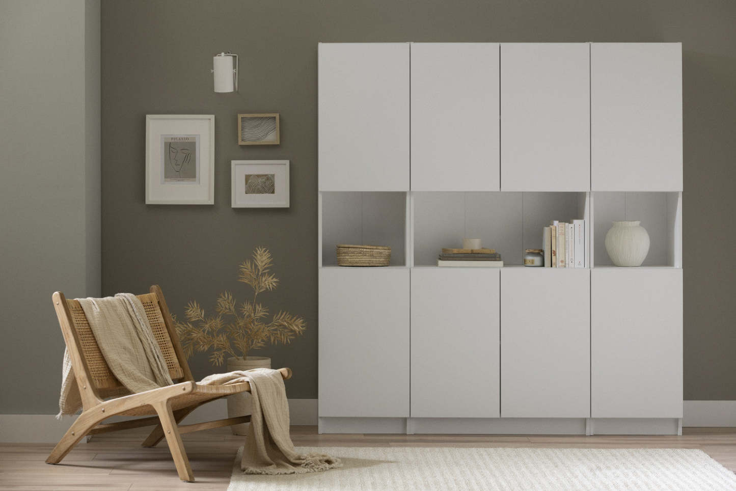 Une solution de rangement flexible. Le salon est un espace où nous passons beaucoup de temps, il est donc essentiel de bien le concevoir pour en tirer le meilleur parti. Choisissez un rangement en hauteur, à la fois ouvert et fermé, avec cette bibliothèque à 2 portes. Équipée de 3 étagères amovibles et d'une étagère fixe au centre, elle multiplie le rangement dans la pièce tout en affichant un style contemporain épuré. Créer une décoration dégagée est un jeu d'enfant ! Les 2 portes sans poignées s'ouvrent avec un mécanisme de poussée. Les jeunes comme les moins jeunes n'auront aucun mal à aux objets rangés à l'intérieur. Que vous ayez besoin de ranger des jouets, des livres ou des matériaux de bricolage, cette étagère étroite répondra à vos besoins en constante évolution. Son apparence minimaliste s'intégrera à tout décor.