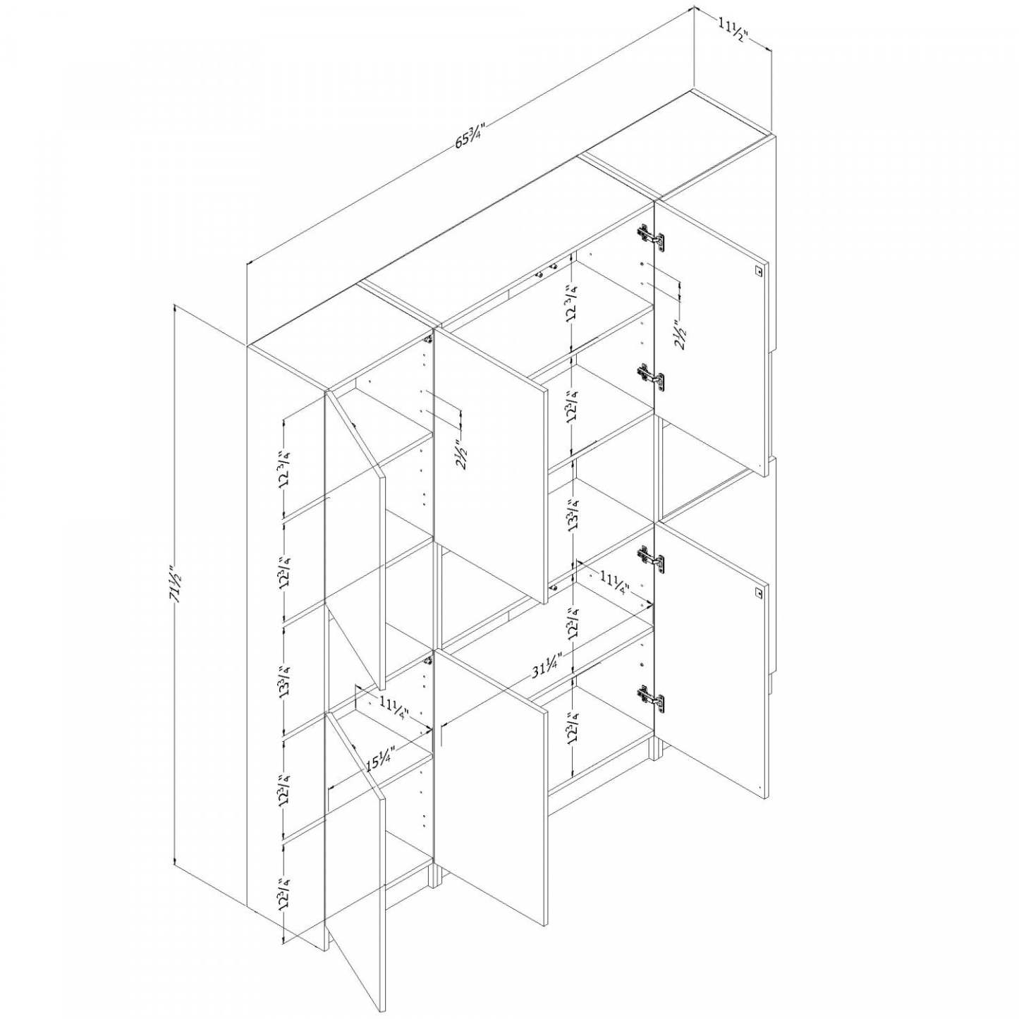 Elegant modules. This set of 3 bookcases creates a fine blend of simplicity and functionality. Inspired by contemporary design, each piece of furniture in this collection is refined, thanks to its handleless doors and open compartment in the center. Showcasing your favorite decorative accessories, photos and knick-knacks has never been easier. In all, this set includes 6 removable shelves that can be moved at will, supporting up to 25 lb. Push-to-open doors make it easy for the whole family to use. A versatile storage solution