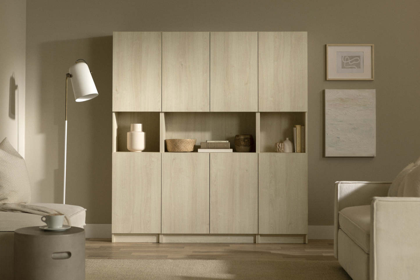 Ensemble bibliothèque et 2 bibliothèques étroites 2 portes Liora - Chêne blanchi | Liora Ensemble Bibliothèque Et 2 Bibliothèques Etroites 2 Portes - Chene Blanchi