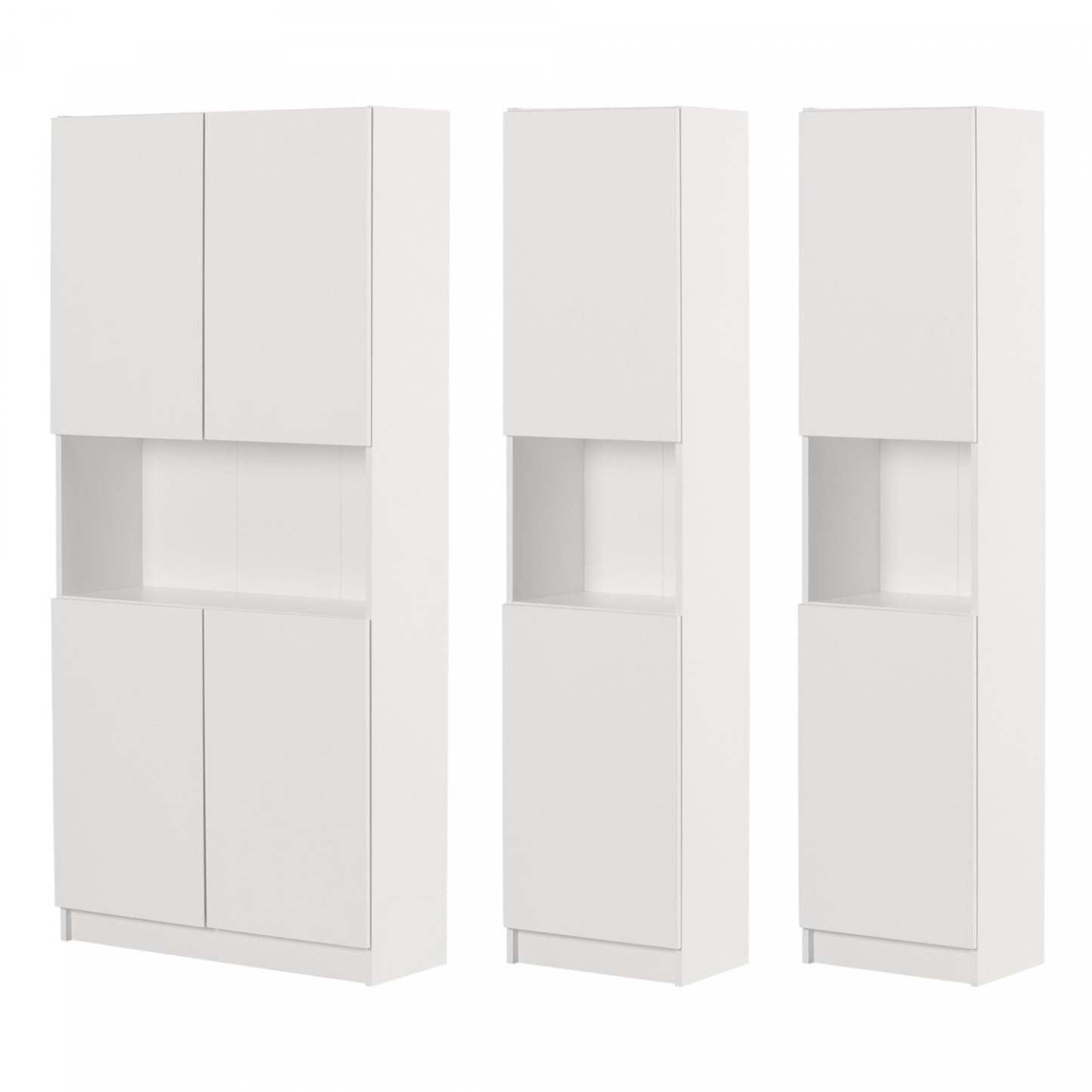 Ensemble bibliothèque et 2 bibliothèques étroites 2 portes Liora - Blanc pur | Liora Ensemble Bibliothèque Et 2 Bibliothèques Etroites 2 Portes - Blanc Solide