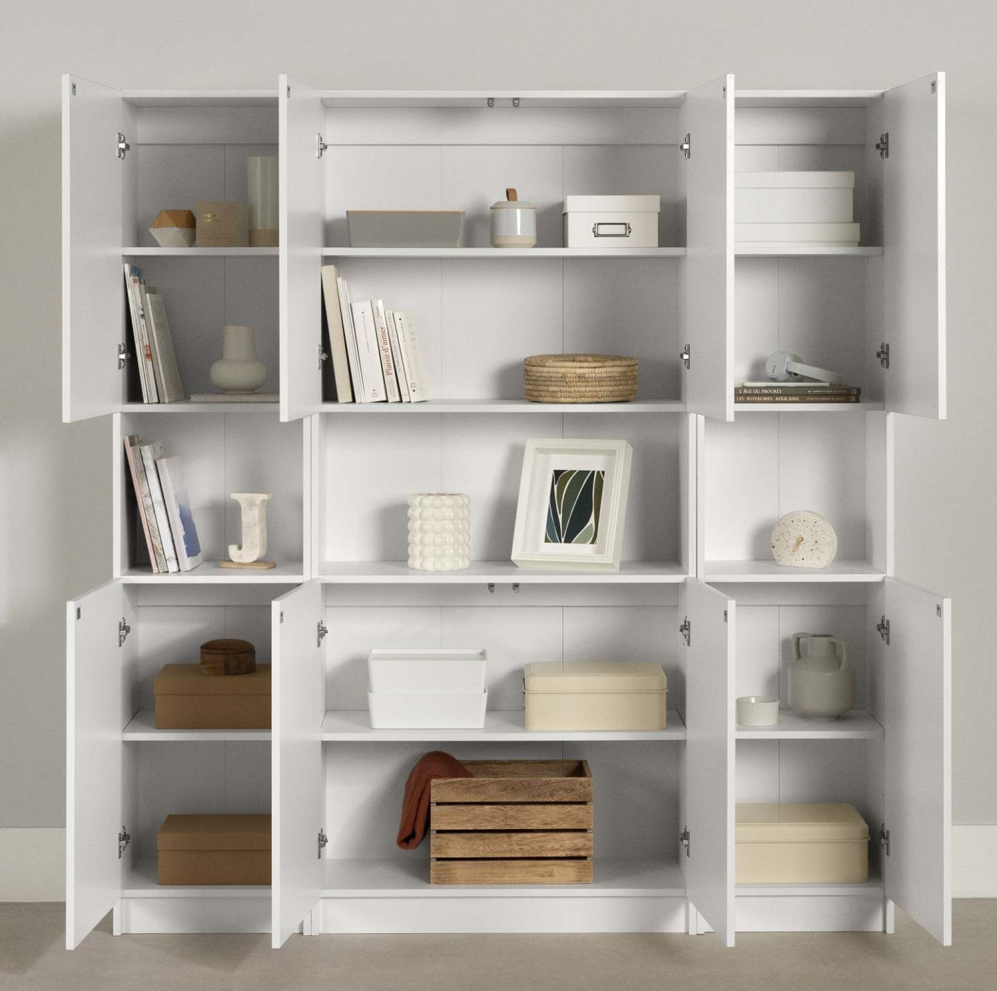 Modules élégants. Cet ensemble de 3 bibliothèques allie avec élégance simplicité et fonctionnalité. Inspiré du design contemporain, chaque meuble de cette collection se distingue par ses portes sans poignées et son compartiment central ouvert. Mettre en valeur vos objets décoratifs, photos et bibelots préférés n'a jamais été aussi simple. Cet ensemble comprend 6 étagères amovibles et modulables, supportant jusqu'à 11 kg. Les portes à ouverture par simple pression facilitent l'utilisation pour toute la famille. Solution de rangement polyvalente, idéale pour un déménagement ou un changement de décoration ? Ces 3 étagères sont conçues pour vous accompagner à chaque étape de votre vie. Chaque module peut être utilisé seul ou côte à côte. Ces bibliothèques optimisent l'espace mural, libérant ainsi du sol.