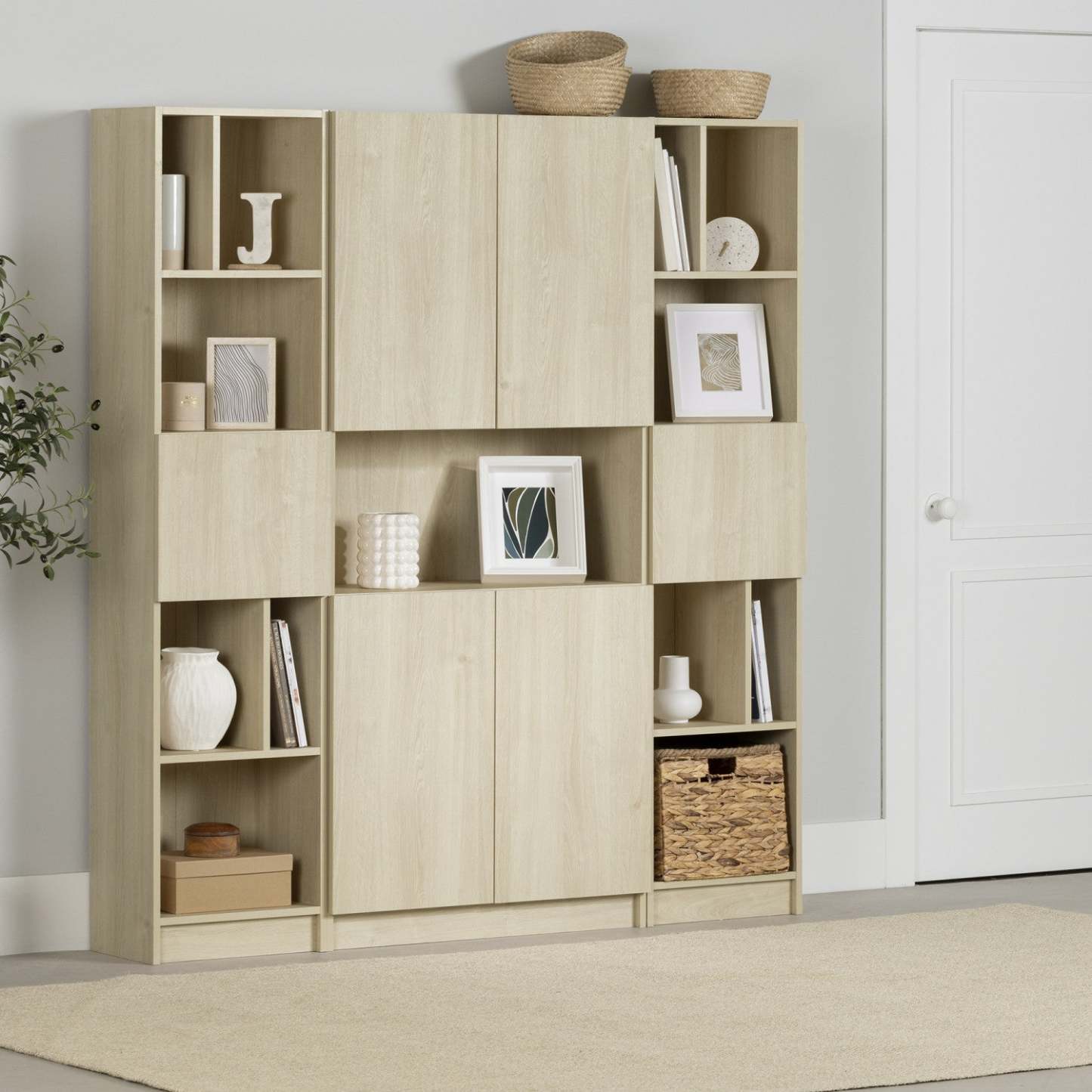 Liora Ensemble de bibliothèque et 2 bibliothèques étroites à 5 étagères - Chêne blanchi | Liora Ensemble Bibliotheque Et 2 Bibliotheques Etroites 5 Tablettes - Chene Blanchi