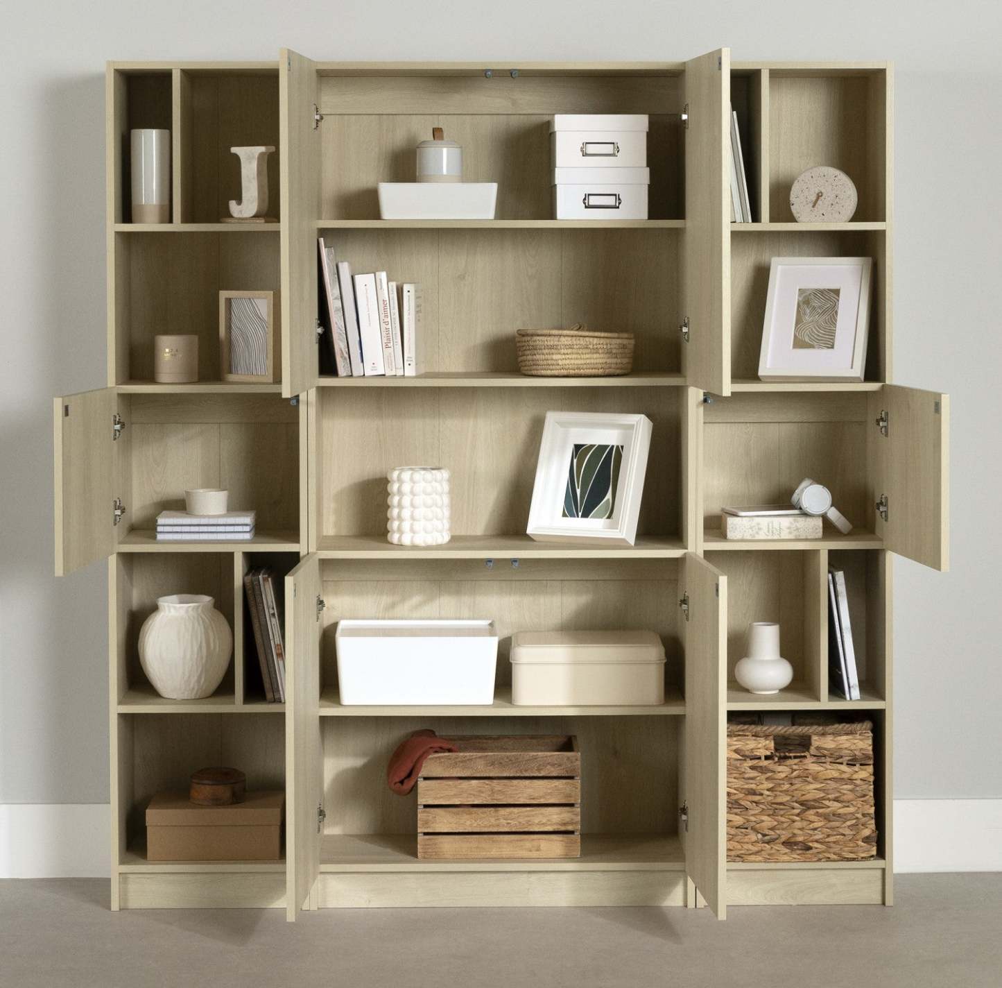 Optimisez l'espace vertical. Avec cet ensemble de bibliothèques modulables, désencombrer votre intérieur devient un jeu d'enfant. Fini le désordre ! Installez ces étagères dans votre salon pour ranger les jouets des enfants, les livres et les magazines sans gaspiller d'espace au sol. Les compartiments ouverts mettent en valeur vos objets décoratifs et apportent une touche contemporaine à votre pièce. Cet ensemble complet au style moderne comprend une bibliothèque principale, légèrement plus large que les deux autres, qui dissimule deux étagères réglables derrière ses quatre portes sans poignées. Les deux étagères étroites offrent quant à elles jusqu'à six configurations possibles en termes d'agencement et d'orientation des portes. Grâce au système d'ouverture par simple pression, les portes s'ouvrent d'une simple pression. Les lignes épurées et droites de cet ensemble d'étagères créeront une ambiance harmonieuse.