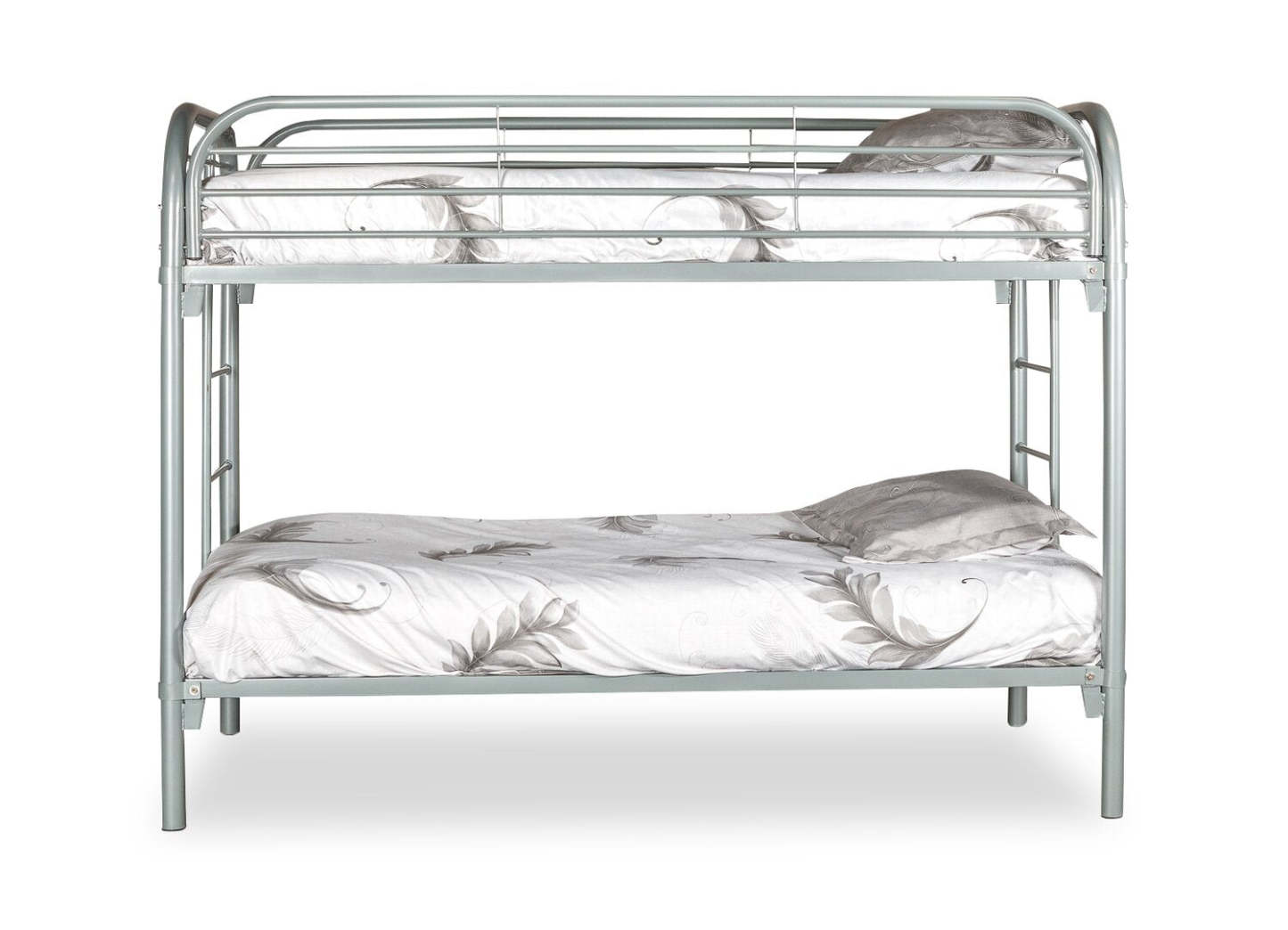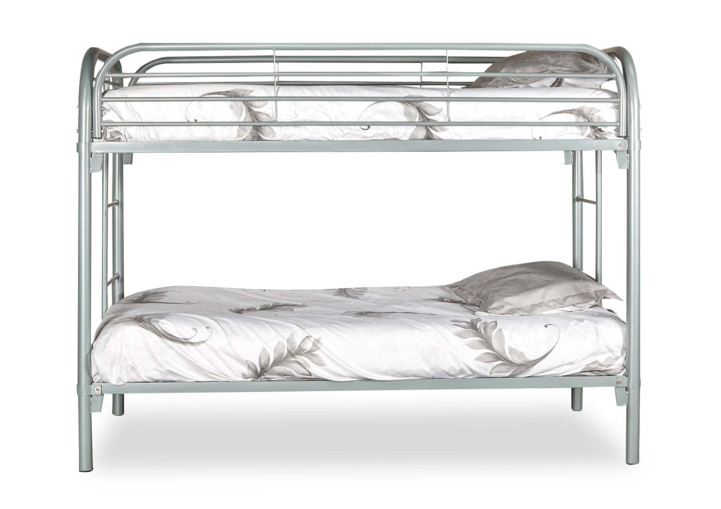 Lit superposé Logan avec échelles et garde-corps pour enfants, métal gris - simple/jumeau | Lits superposés Logan pour enfants avec échelles et garde-corps, métal gris - simple et simple