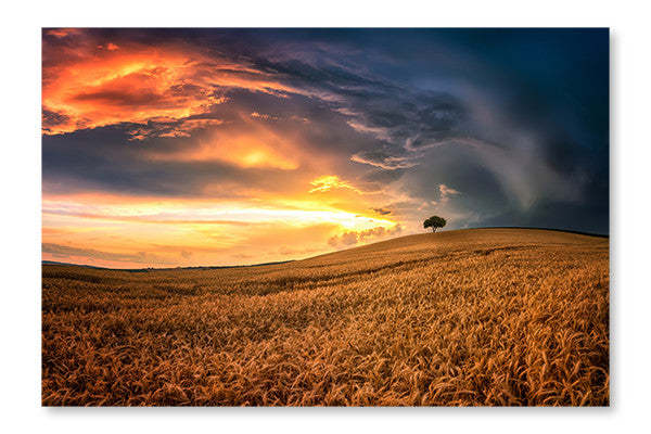 Arbre solitaire dans une mer de blé 28 x 42 po : Cadre d'art mural et panneau de tissu | Arbre solitaire dans une mer de blé 28 po x 42 po : Cadre d'art mural et panneau de tissu | D44GKRF2