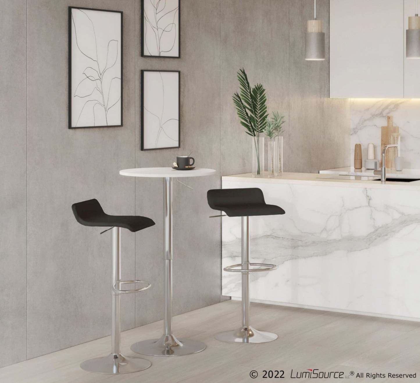A gentle wave in the upholstered leatherette seat of the Ale Bar Stool creates a welcoming allure. Featuring an adjustable polished chrome pole, base, and footrest, this stool allows you to position the seat height anywhere from 21' to 30'. With the Ale Bar Stool you get simple yet sophisticated style at a great value!