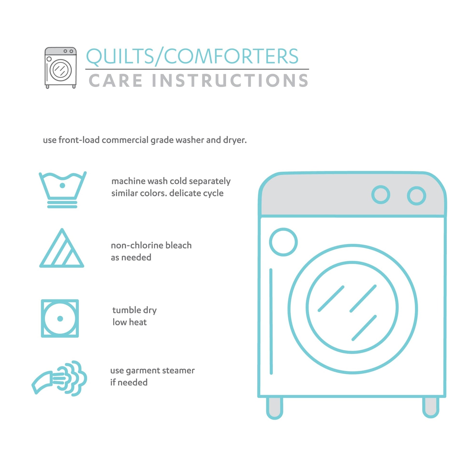 - Utilisez une laveuse et une sécheuse à chargement frontal de qualité commerciale. Lavez en machine à froid, séparément, avec des couleurs similaires. Cycle délicat. Utilisez uniquement un agent de blanchiment sans chlore si nécessaire.