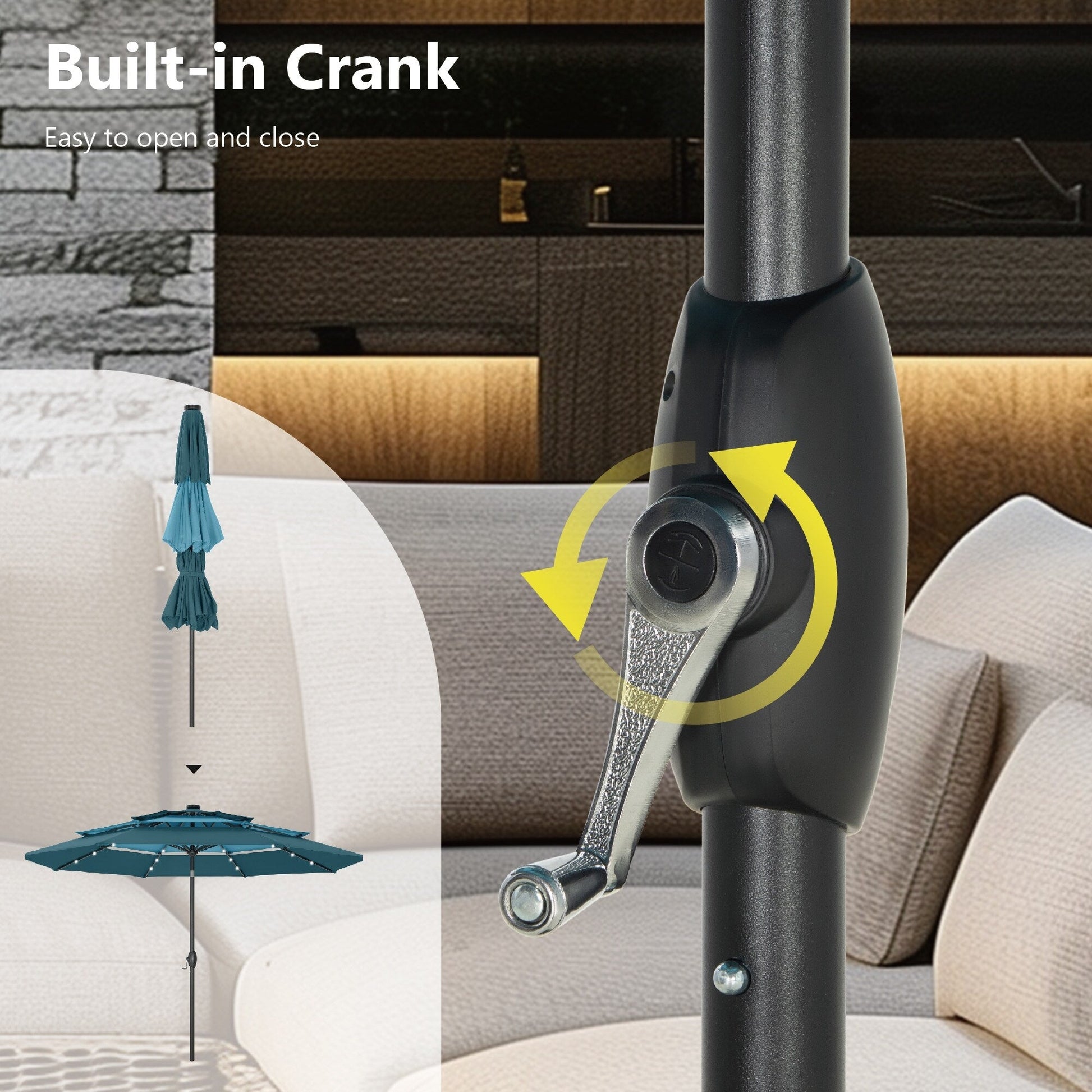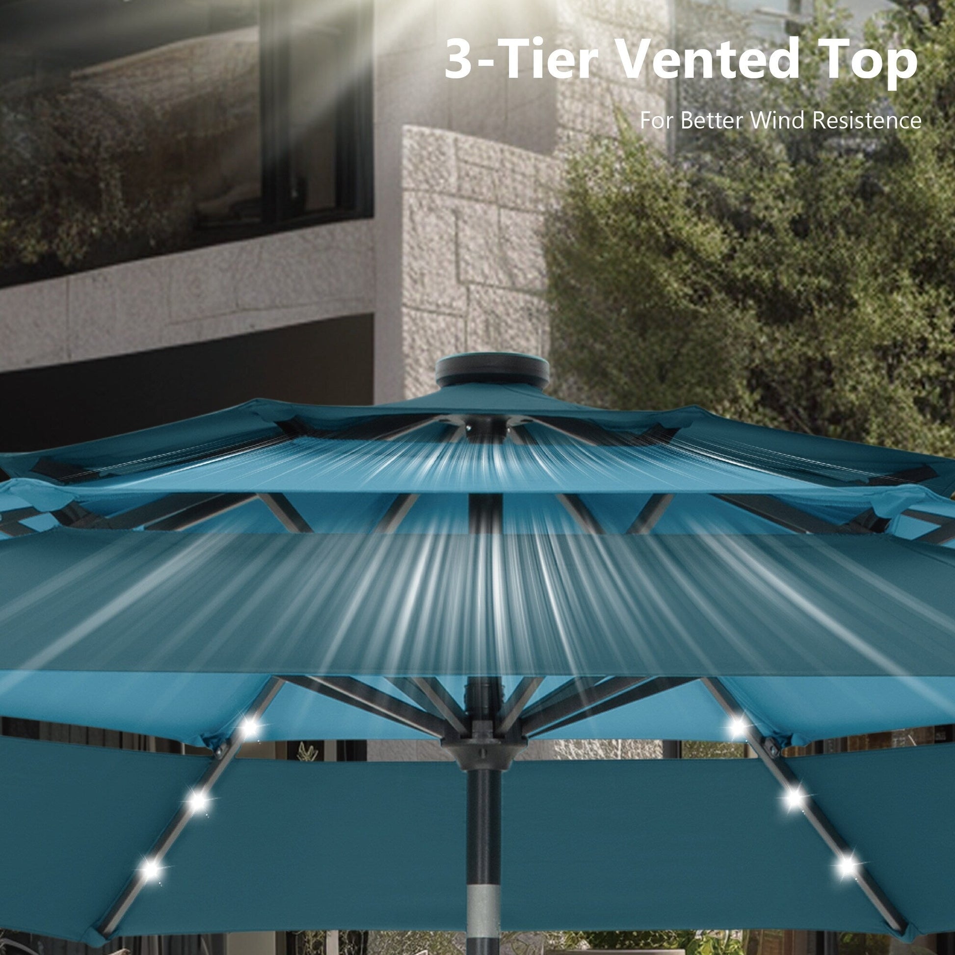 Parasol de terrasse MAISON ARTS de 3 m (10 pi) à 3 niveaux, à inclinaison automatique, double ventilation et éclairage LED