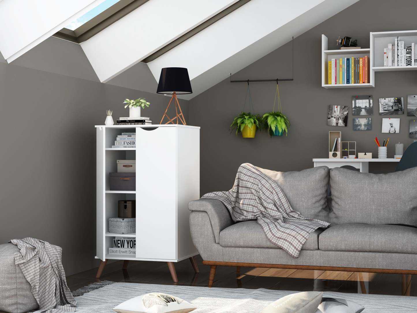 Manhattan Comfort Hampton Shoe Closet with 4 Shelves Solid Wood Legs - White|Armoire à chaussures Hampton de Manhattan Comfort avec 4 tablettes et pattes en bois massif - blanche