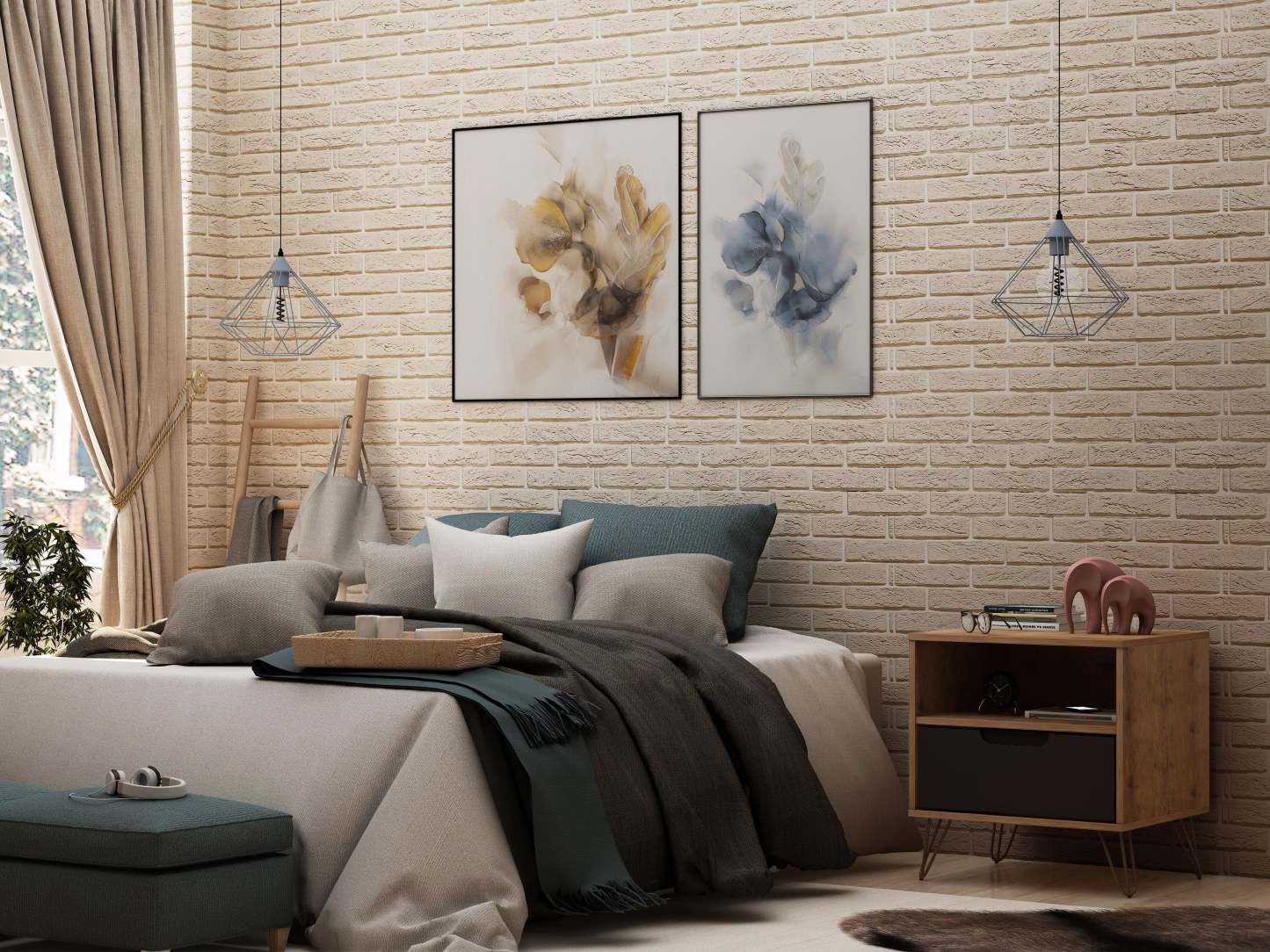 Manhattan Comfort Rockefeller Mid-Century Modern Nightstand with Drawer - Natural & Textured Grey|Table de nuit Rockefeller de Manhattan Comfort de style moderne du milieu du 20e siècle avec tiroir - naturel et gris texturé