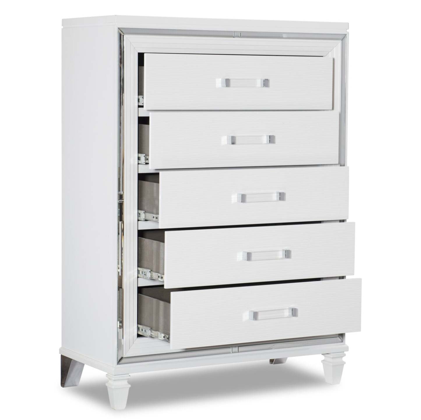 Commode de chambre Max, 5 tiroirs, 38 L x 54,3 H, Glam - Blanc | Commode verticale somptueuse Max de 38 po (L) x 54,3 po (H) à 5 tiroirs pour la chambre à coucher - blanche