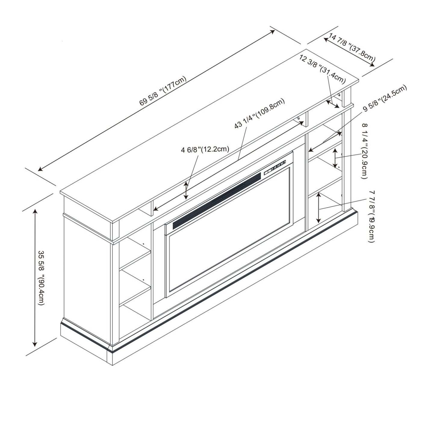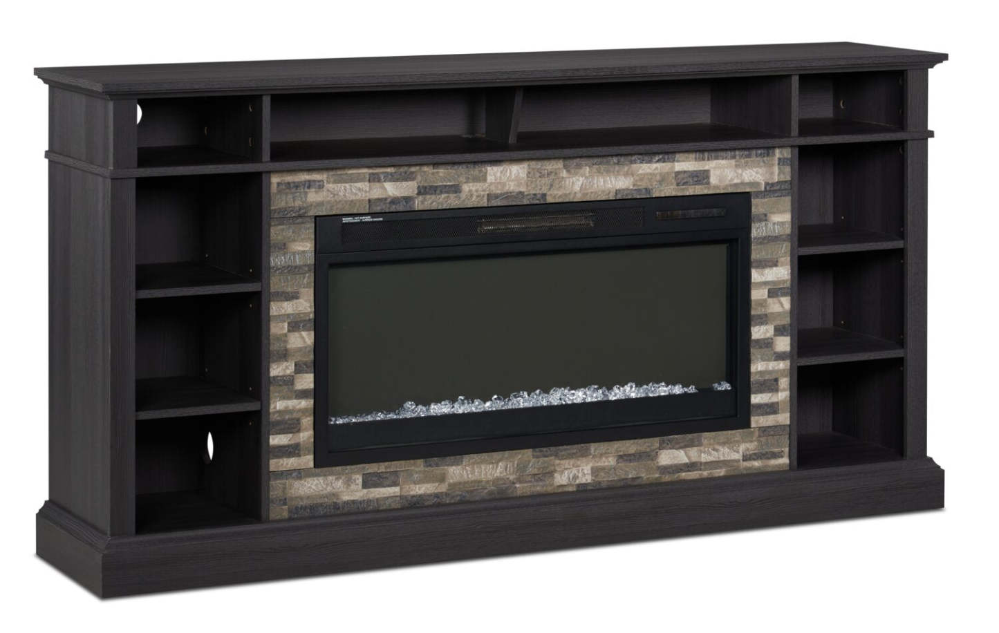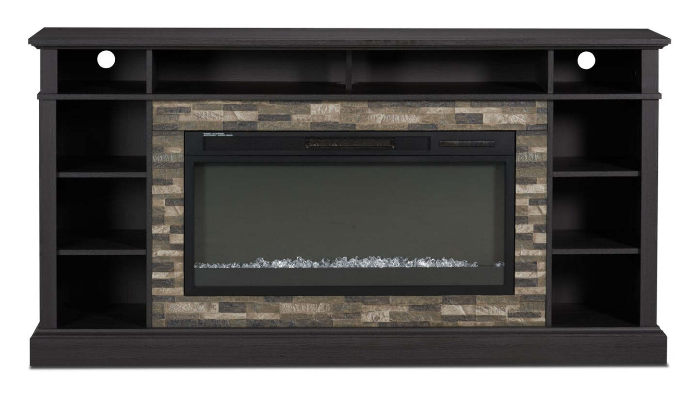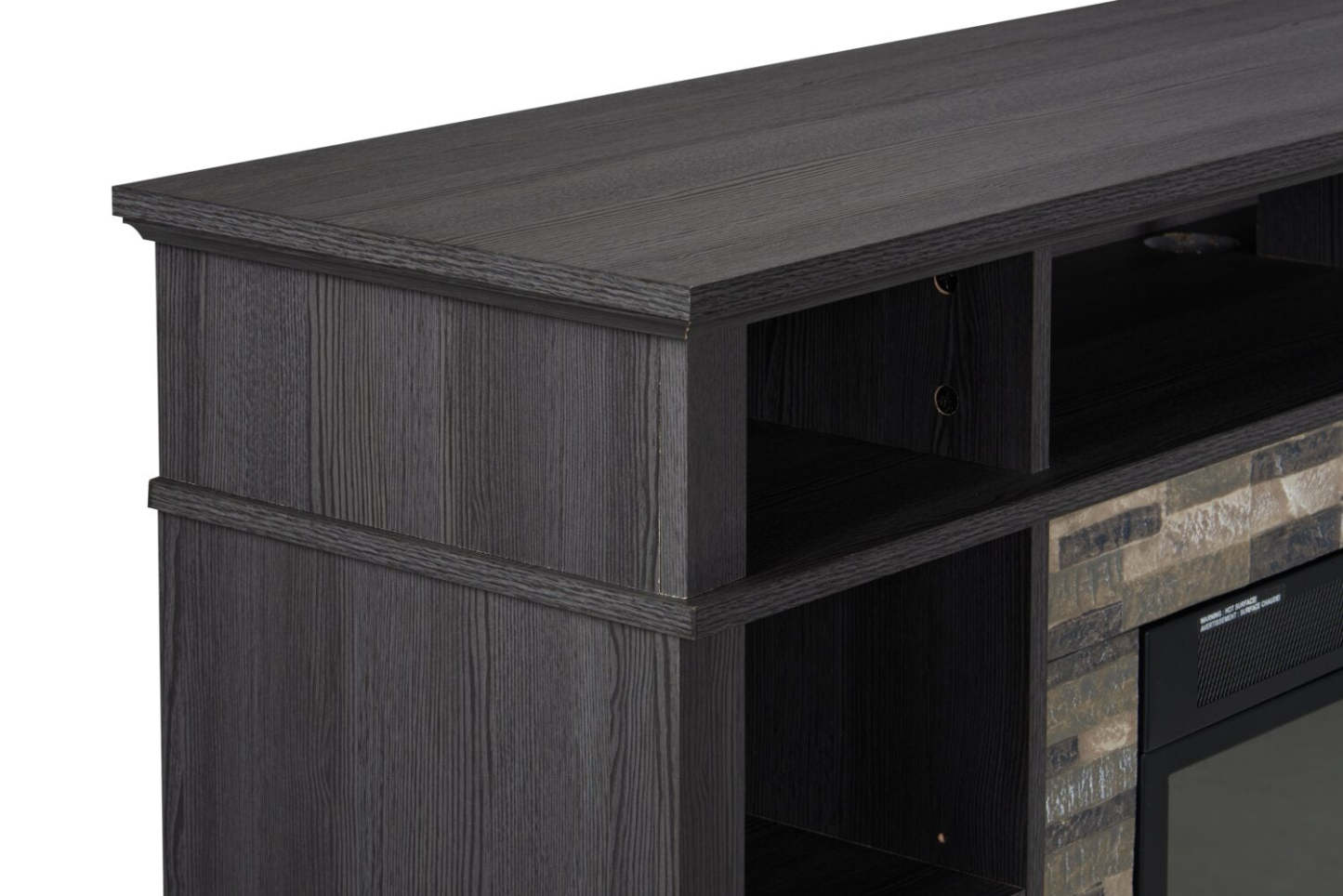 Apportez de la chaleur à votre espace de vie avec cette cheminée électrique Lappland qui fait également office de meuble TV. Son ton noir chêne neutre ajoute du caractère à la texture du bois, tandis que la fausse pierre entourant le foyer crée un contraste traditionnel. Que ce soit pour servir de centre de divertissement ou de vaisselier dans la salle à manger, les 10 compartiments permettent de placer tous les essentiels. Si vous décidez de l'utiliser pour regarder le grand match, ce meuble supporte un téléviseur allant jusqu'à 80 pouces et dispose de trous pour gérer les câbles. Pendant les rudes journées d'hiver ou même les nuits d'été fraîches, la flamme dansante sur les braises en cristal apportera confort et ambiance dans des espaces grands ou petits.