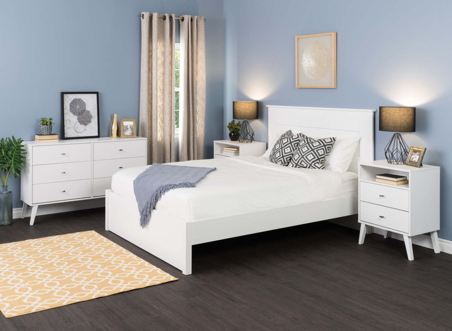 La commode Prepac Milo à 6 tiroirs revisite le style rétro avec une élégance moderne. Son design épuré, inspiré du milieu du siècle, apporte une touche vintage à votre chambre. Ses six tiroirs coulissent en douceur sur des glissières métalliques, offrant un accès facile au rangement pour vos vêtements et autres accessoires de chambre. Ses pieds fuselés en bois massif et ses tiroirs encastrés confèrent à votre chambre un style moderne et épuré. Les poignées en laiton brossé complètent le charme rétro-chic de cette commode à la fois fonctionnelle et tendance. Vous pouvez l'utiliser seule ou l'associer à d'autres meubles de la collection Milo pour un style intemporel.