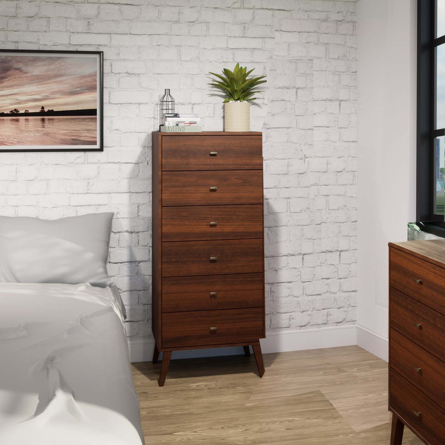 Commode haute Milo à 6 tiroirs - Cerisier|Commode verticale haute Milo à 6 tiroirs - cerisier