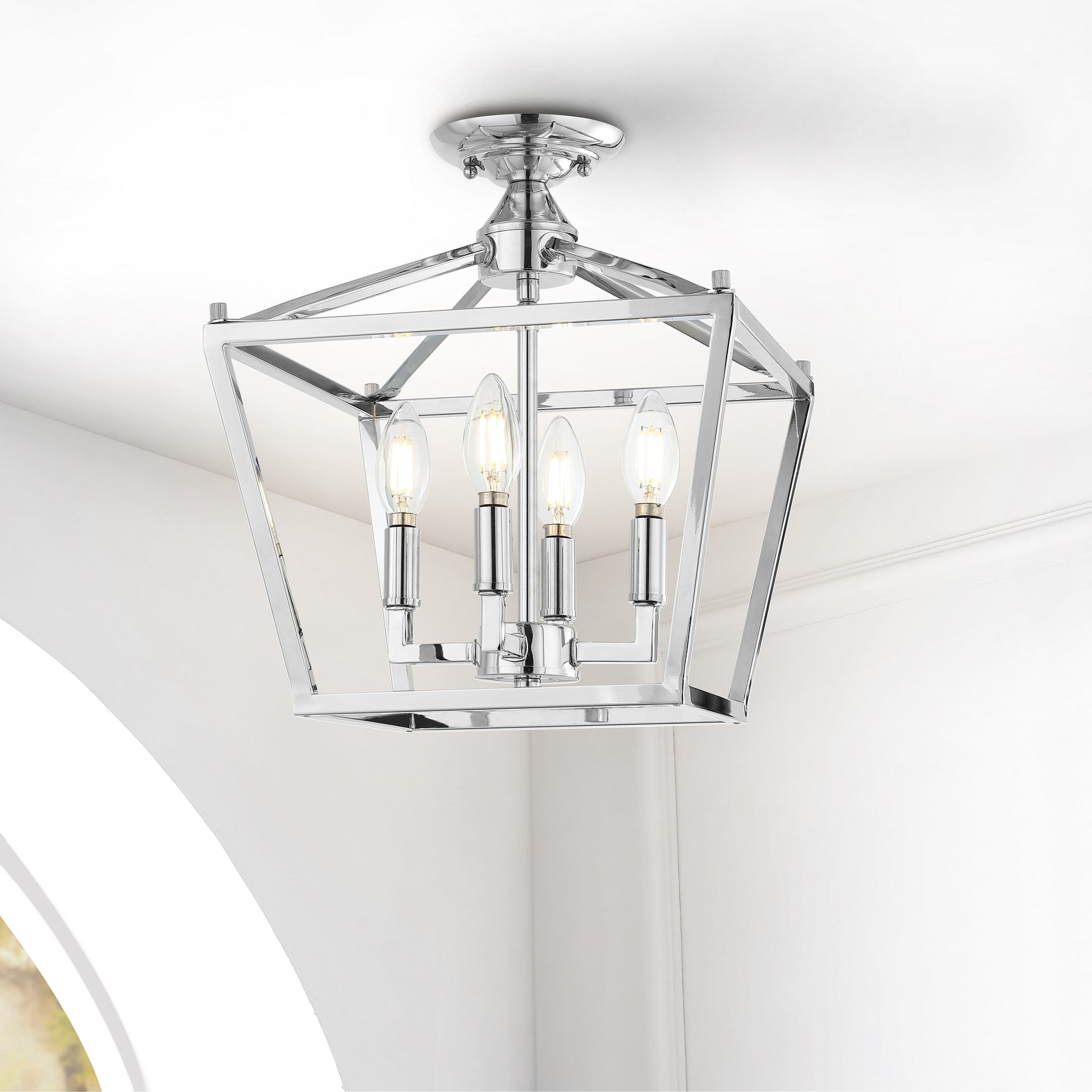Mini lanterne Milton à 4 lumières en fer, style ferme moderne, plafonnier LED encastré, par JONATHAN Y