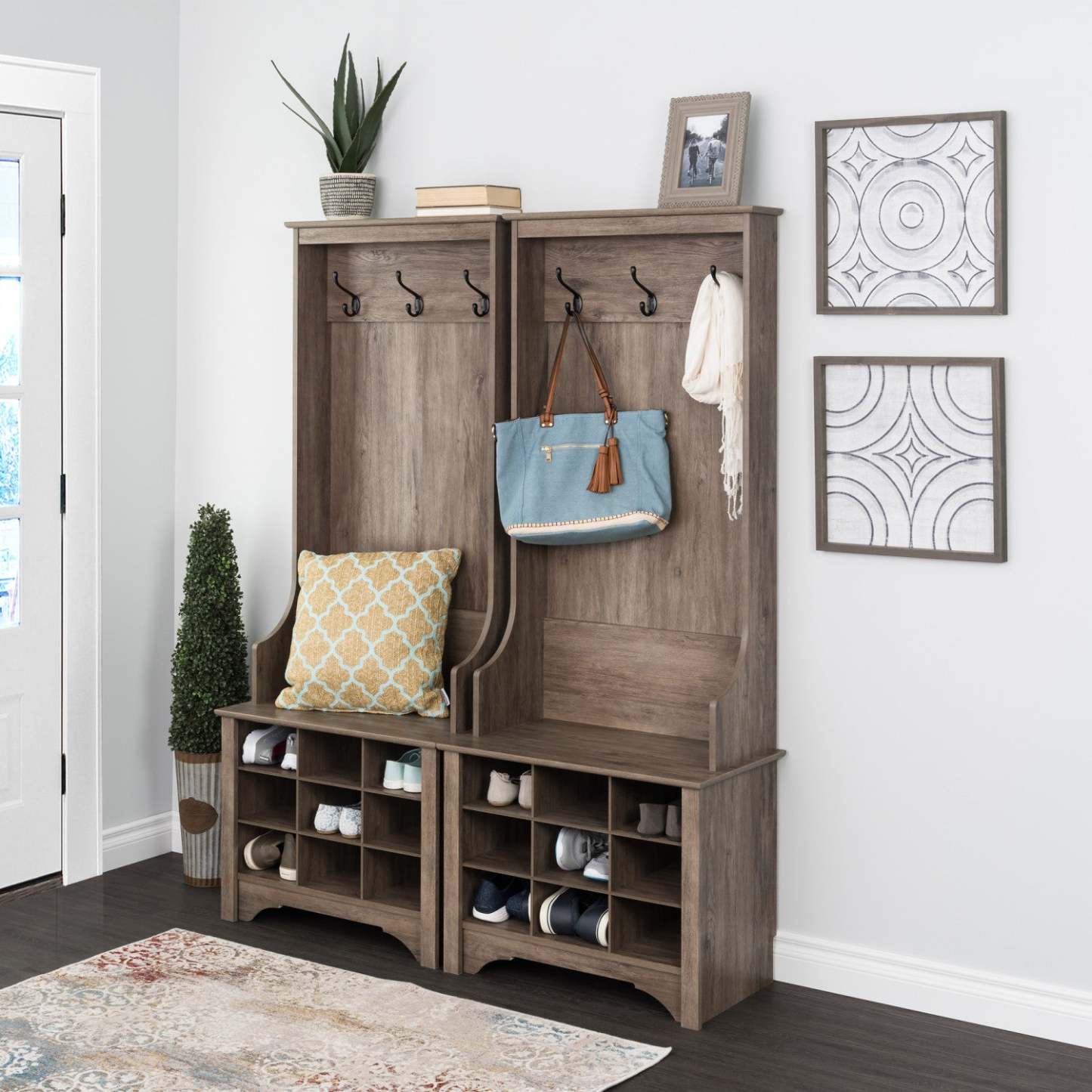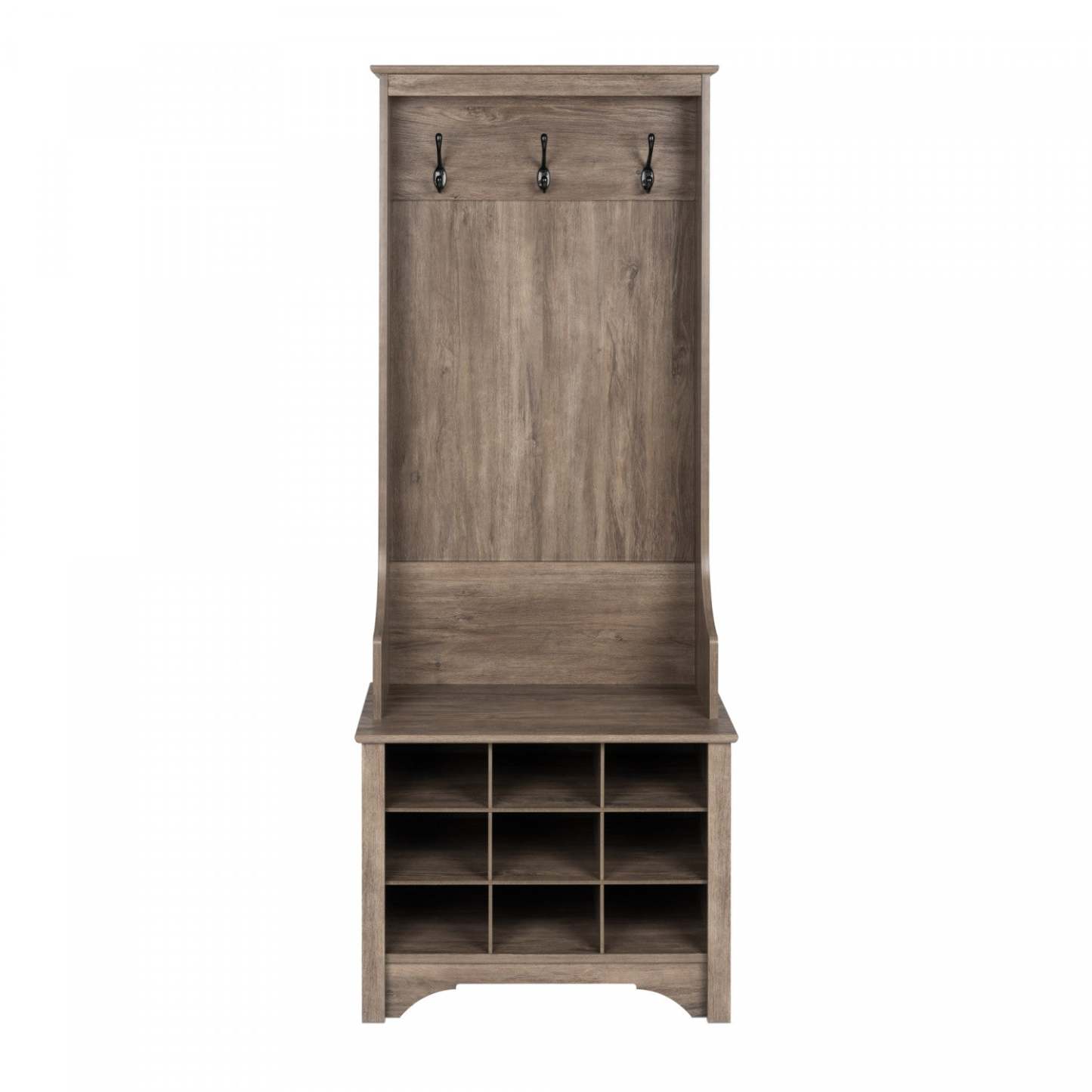 Arbre d'entrée étroit avec neuf compartiments à chaussures - Drifted Grey|Portemanteau étroit avec 9 compartiments à chaussures - gris délavé