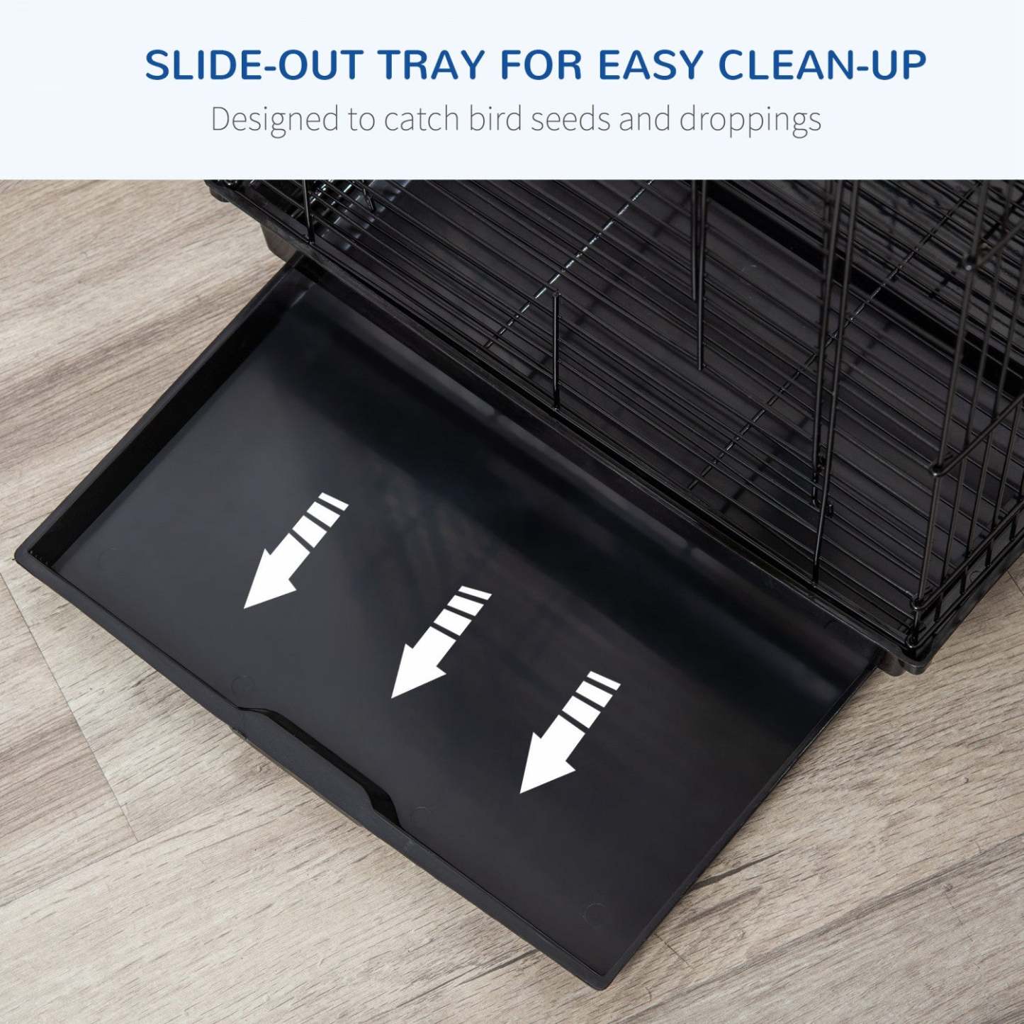 Pawhut 23 Cage à Oiseaux Volière Maison pour Perroquets Caillebotis avec Plateau de Jeu Ouvert et Bol d'Alimentation Perc|Pawhut 23 Cage A Oiseaux Parc Avec Plateau De Jeu Ouvert Et Bol D'alimentation Noir
