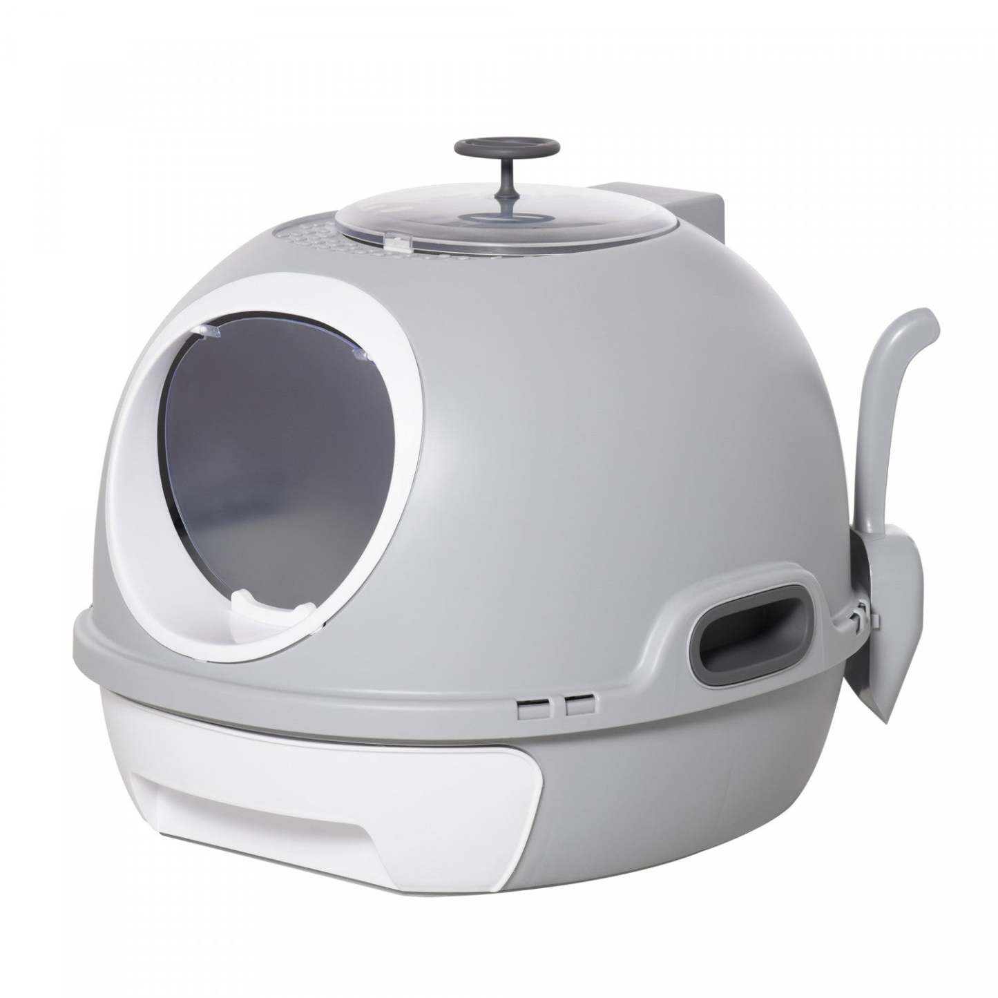 La litière pour chat avec couvercle de Pawhut offre un design tendance et privé, offrant à votre chat une tranquillité d'esprit. Son apparence de capsule spatiale comprend une chambre principale spacieuse pour un accès facile, tandis que le panneau supérieur permet à la lumière naturelle de créer une atmosphère apaisante. Avec une pelle détachable et un plateau amovible pour un nettoyage facile, cette élégante enceinte de litière pour chat est un ajout visuellement agréable à votre maison.