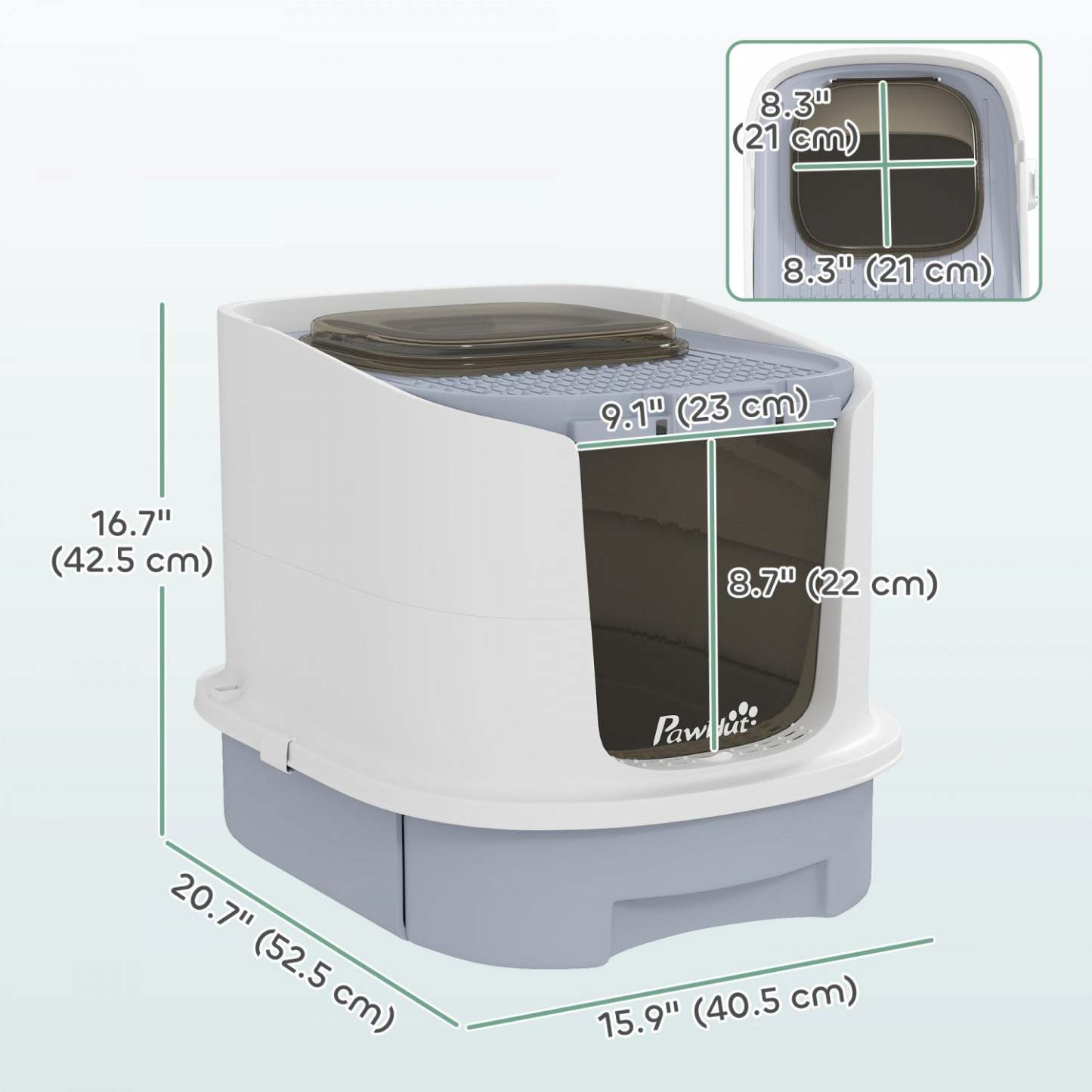Pawhut Bac À Litière Pour Chat Avec Couvercle, Enclos À Litière Fermé Avec Pelle, Entrée Par Le Dessus, Sacs De Désodorisation
