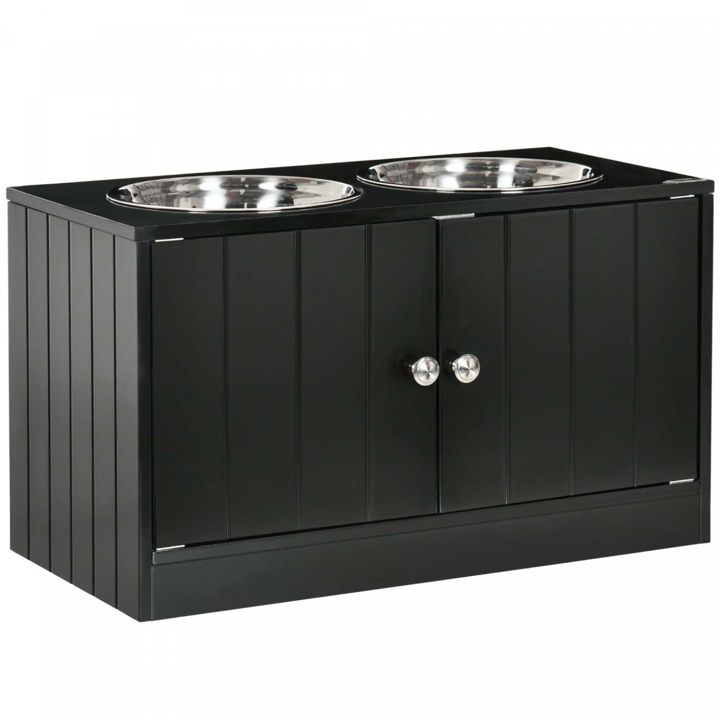 Pawhut Bol De Chien Surélevé Pour Gros Chien Station D'alimentation Pour Animaux De Compagnie Avec Support, Rangement, 2 Acier Inoxydable