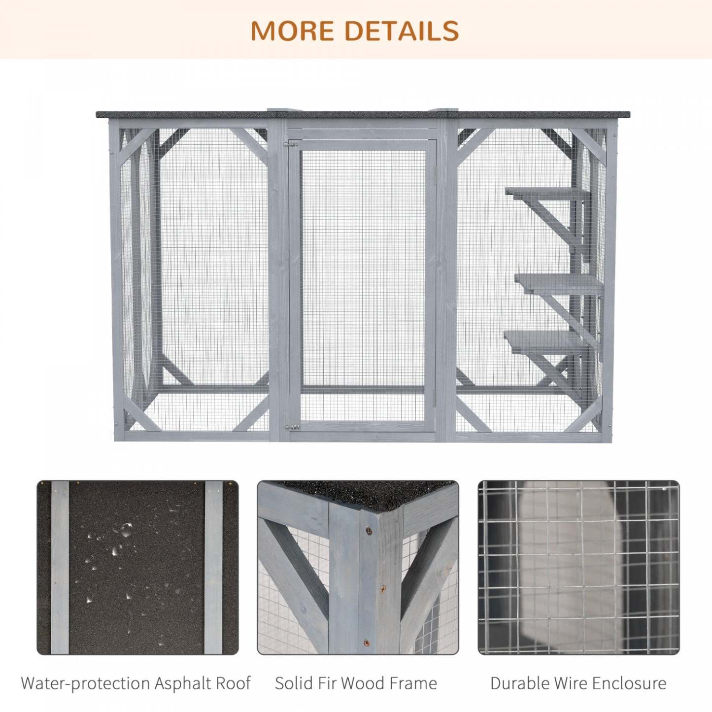 Etes-vous fatigué de chercher un espace de jeu sûr et confortable pour votre adorable animal de compagnie ? Ne cherchez plus ! La cage pour animaux Pawhut est un foyer idéal et un habitat naturel pour plusieurs chats ou autres petits animaux. La structure en fil métallique, la peinture en spray et le cadre en bois de sapin offrent un environnement sûr et protégé. La couverture en feutre bitumé est résistante à l'eau et au soleil, offrant à vos petits amis à fourrure une protection par tous les temps !