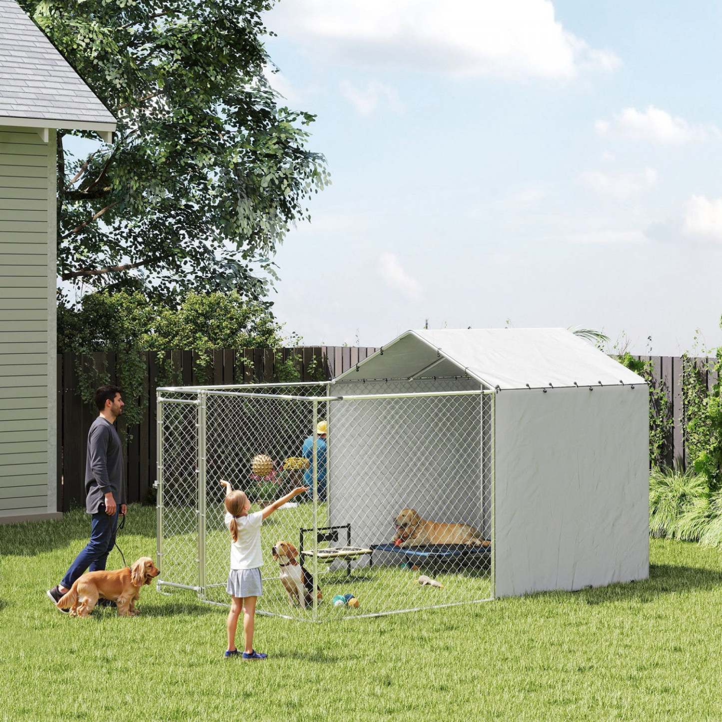 Pawhut Enclos Extérieur pour Chien avec Couverture Imperméable et Résistante aux UV, Parc pour Chien avec Verrou Sécurisé pour Chiens de Petite, Moyenne et Grande Taille, 13.1' X 7.5' X 7.5'