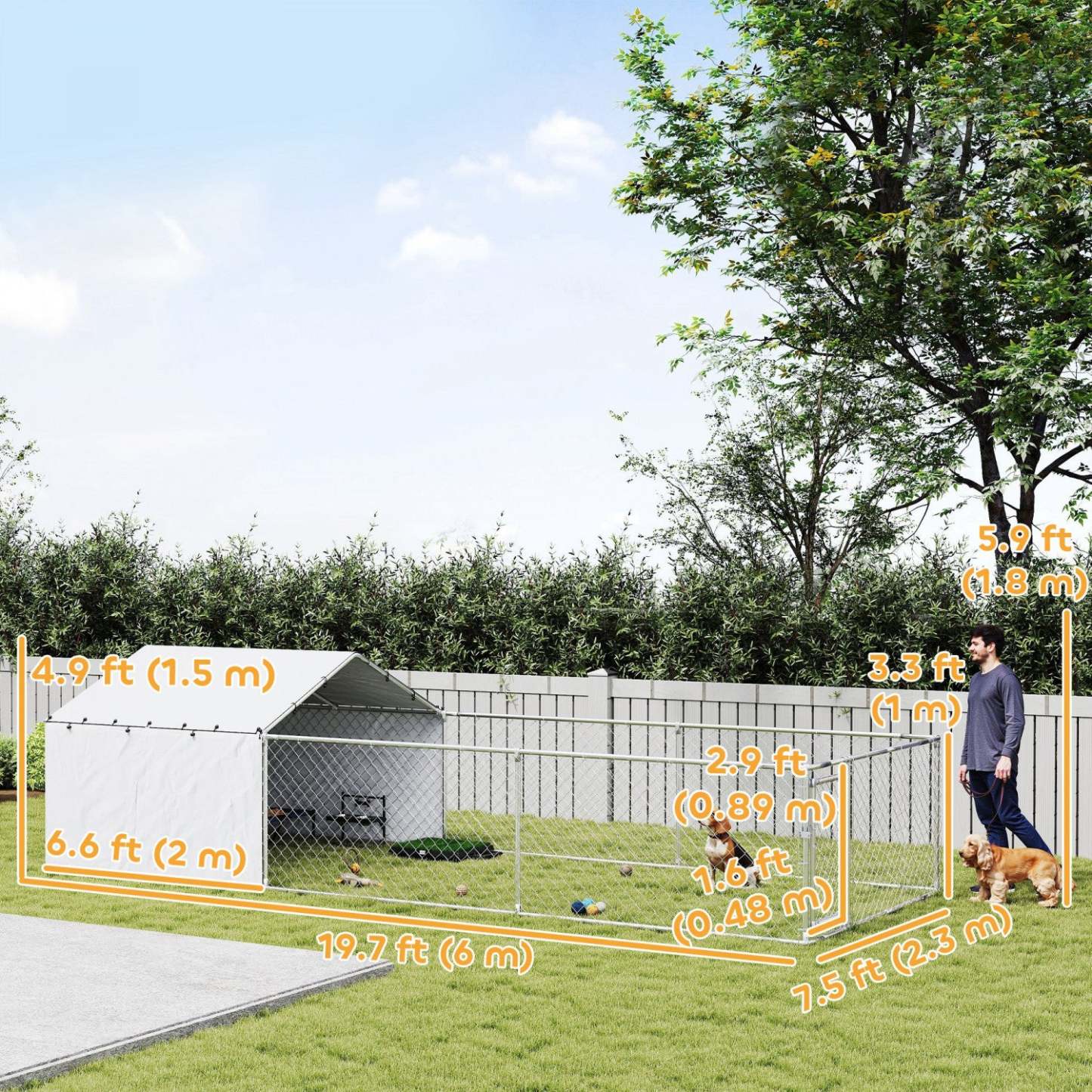 Pawhut Enclos Extérieur pour Chien avec Couverture Imperméable et Résistante aux UV, Parc pour Chien avec Verrou Sécurisé pour Chiens de Petite, Moyenne et Grande Taille, 19.7' X 7.5' X 4.9'