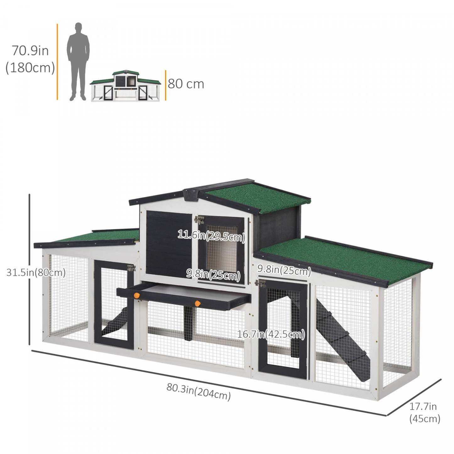 Plongez dans le confort avec le clapier pour lapins Pawhut, un clapier en bois spacieux comprenant une maison confortable et des enclos doubles pour jouer. Enveloppé dans un treillis métallique pour la sécurité et équipé de plusieurs portes et rampes pour un accès facile. De plus, un tiroir à déjections amovible et un toit en asphalte assurent un nettoyage facile et protègent vos lapins, faisant de cette maison pour lapins et cage à lapins un choix incontournable.