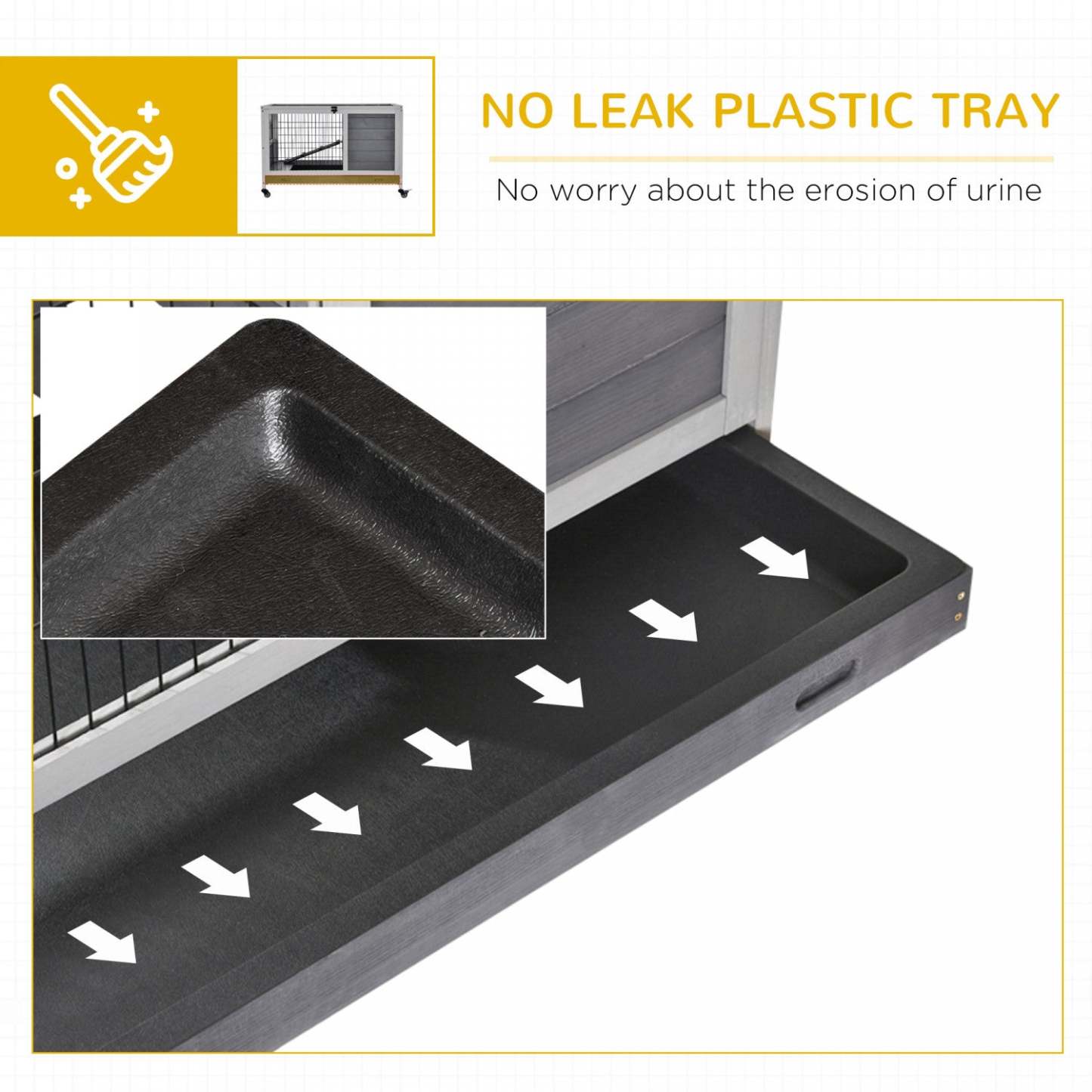 Pawhut Huche D'interieur En Bois Pour Lapin Avec Cage Surelevee Avec Enclos Ferme Avec Roues, Ideal