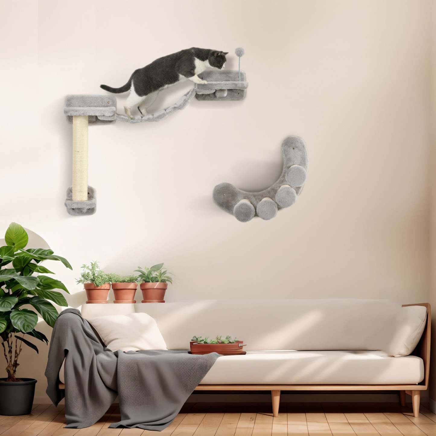 Éveillez le soif de curiosité et d'aventure de votre animal de compagnie avec ces étagères murales pour chats de Pawhut. Elles sont fabriquées en aggloméré pour une durabilité à long terme. Comprenant des plateformes de saut, des poteaux à gratter et un hamac, cette étagère pour chats sera un endroit parfait, alliant divertissement et détente. Elle est fournie avec tous les accessoires nécessaires à son installation. Idéale pour utiliser vos murs et leur donner leur propre espace loin des autres animaux de compagnie.