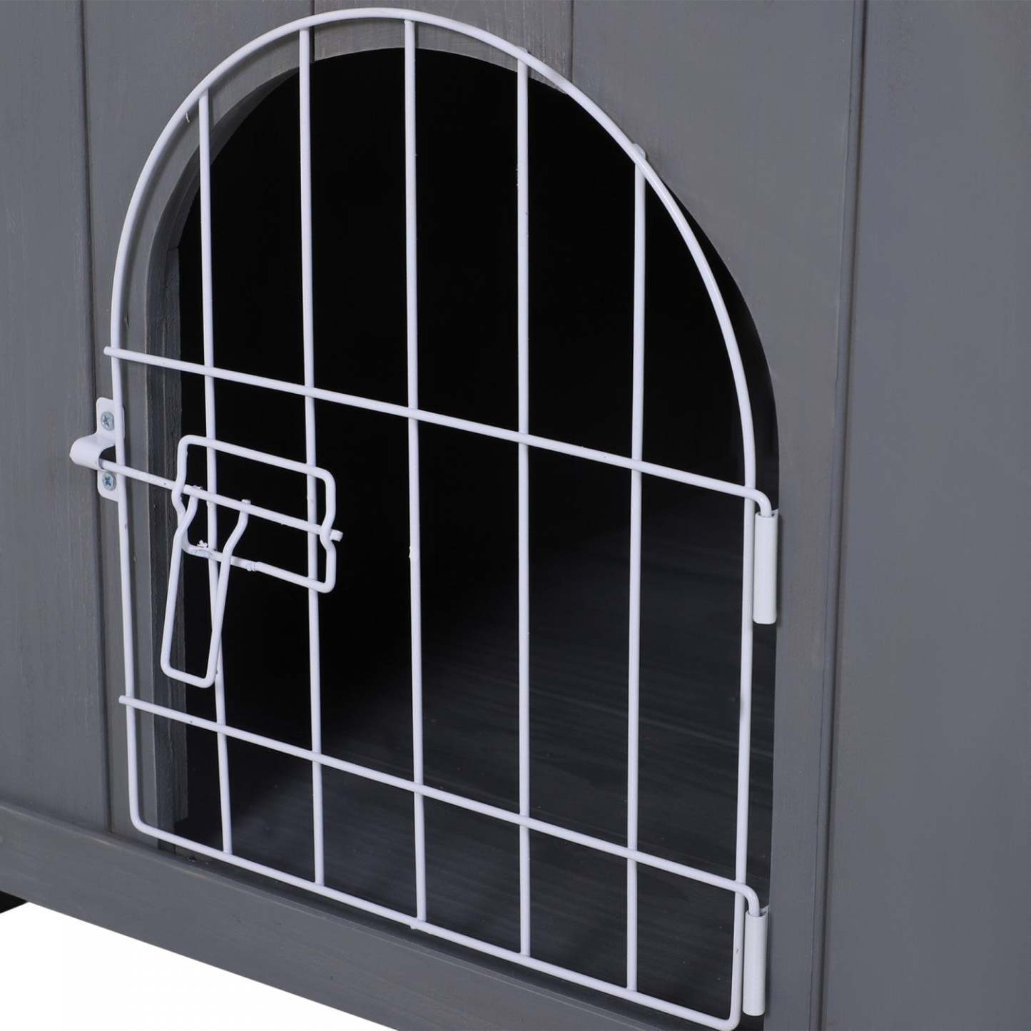 Pawhut Maison Pour Animaux à 2 Niveaux Pour Chats et Chiens Miniatures, Abri en Bois Pour Chat Avec Enclos, Balcon|Pawhut Abri Pour Chats En Bois, Extérieur, simulation Et Surélevé, À Deux Niveaux, Avec Balcon, Gris