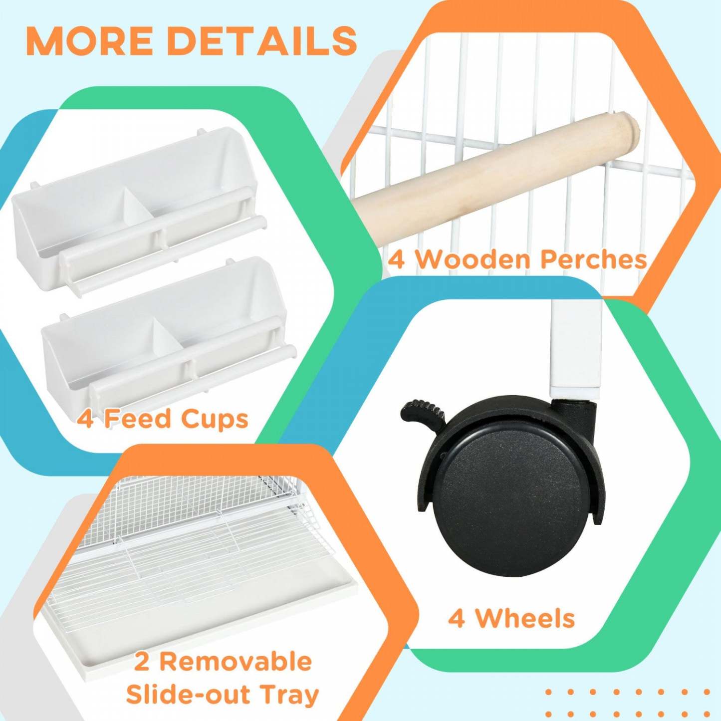 Pawhut Mangeoire Cage A Oiseaux En Metal Forge Avec Support Roulant Perchoirs Contenants Alimentaire Roues 67 H