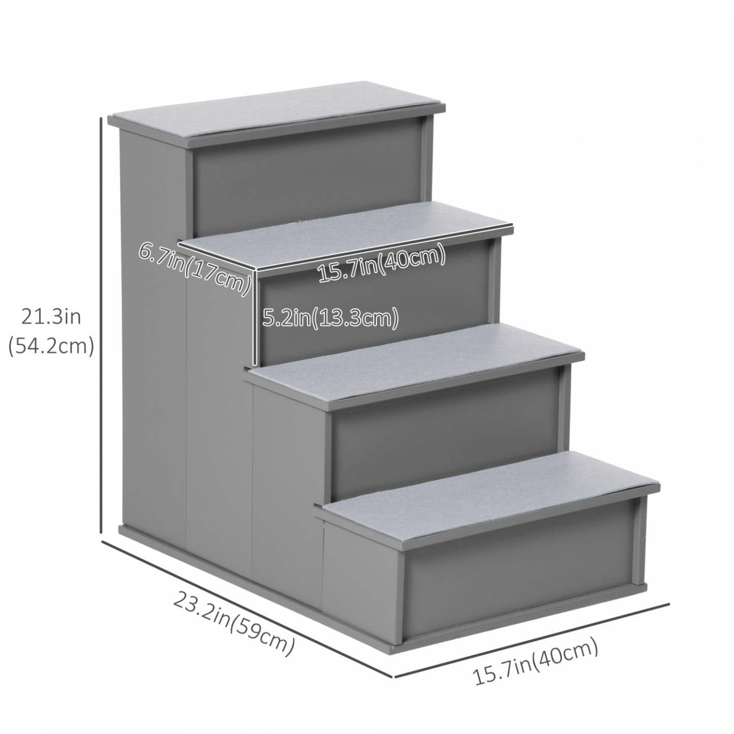 Pawhut Marche Escaliers 4 Niveaux En Bois Chien Pour Animaux De Compagnie Pour Lit Haut, Échelle De Chat Pour Lit Canapé Avec Car Non Glissant