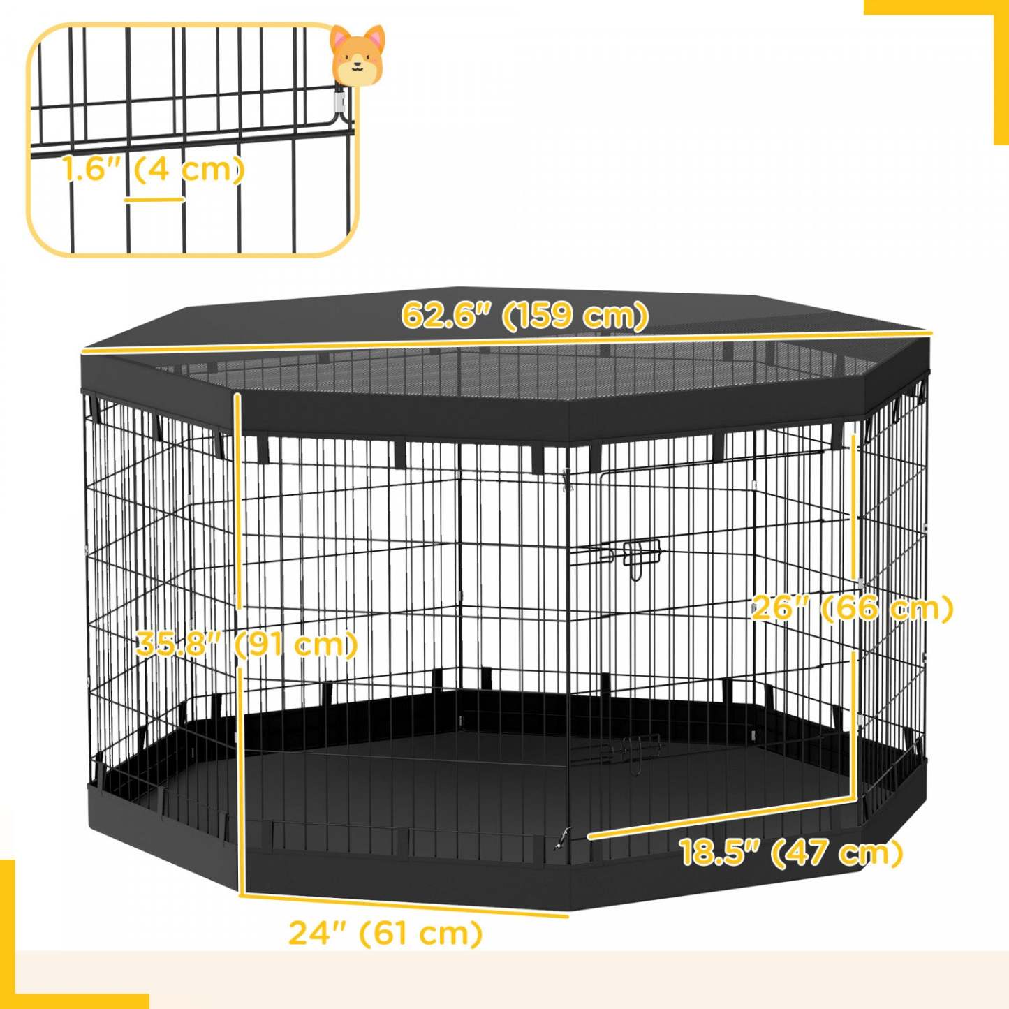 Pawhut Parc Pour Chien, 8 Panneaux Pliables, Coussin Imperméable, Couverture Supérieure Résistante À