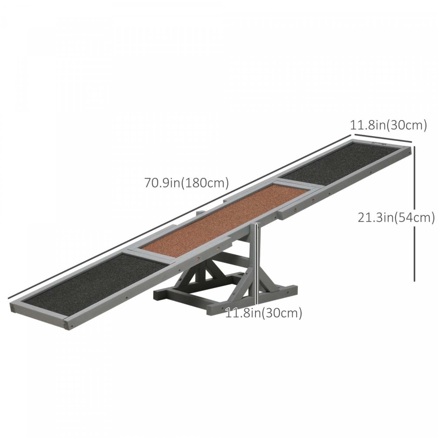 Pawhut Plateforme de Bascule en Bois pour Animaux Fournitures pour Animaux Résistants aux Intempéries Jouet de Jeu d'Agilité pour Chiens Gris